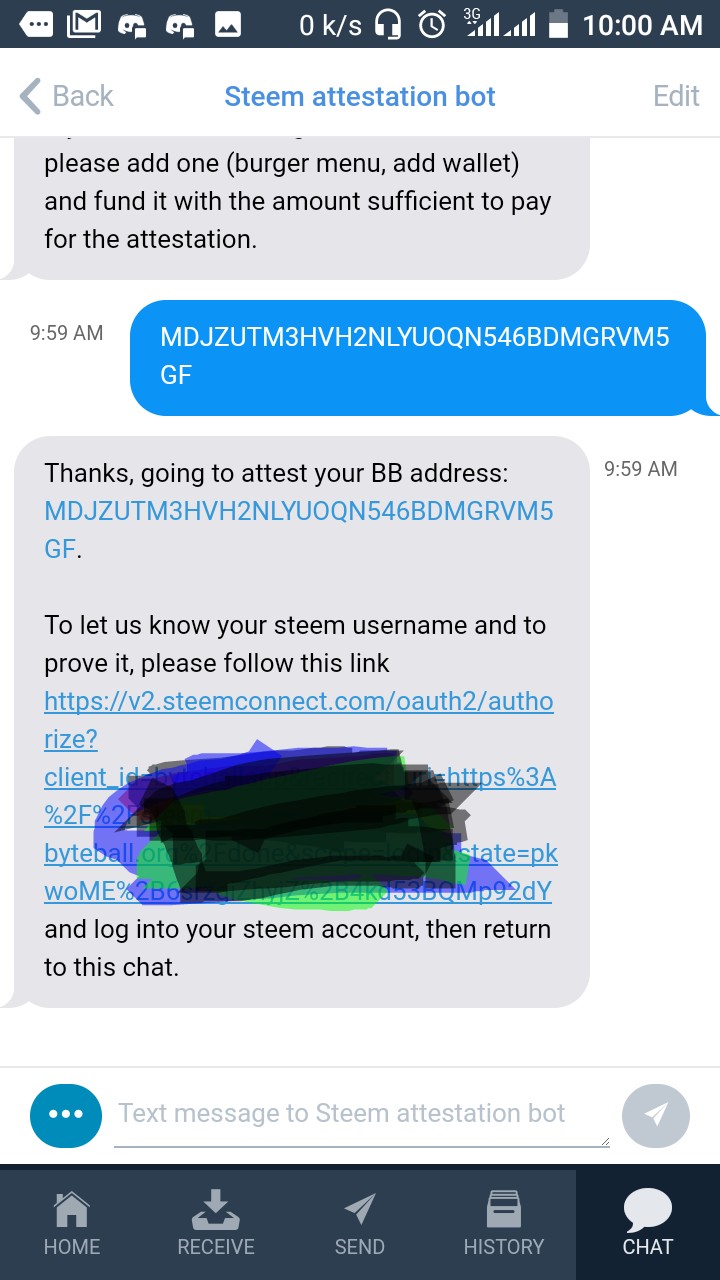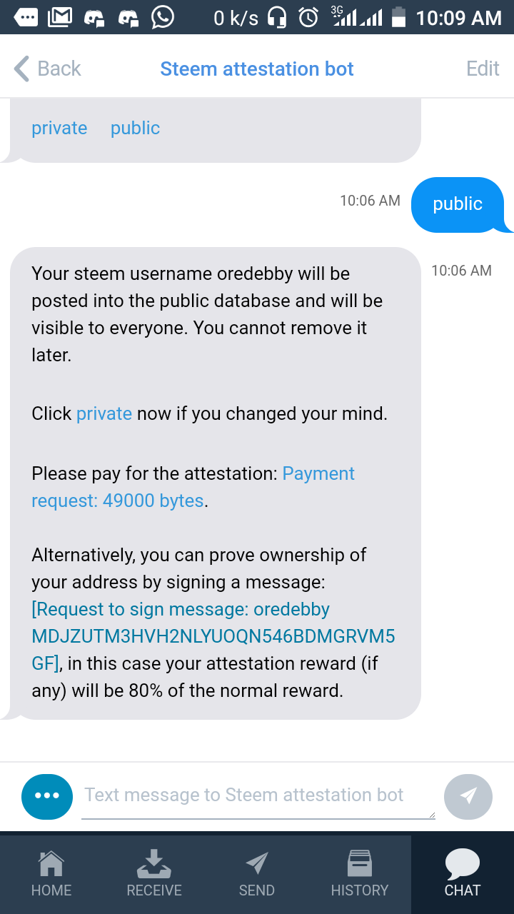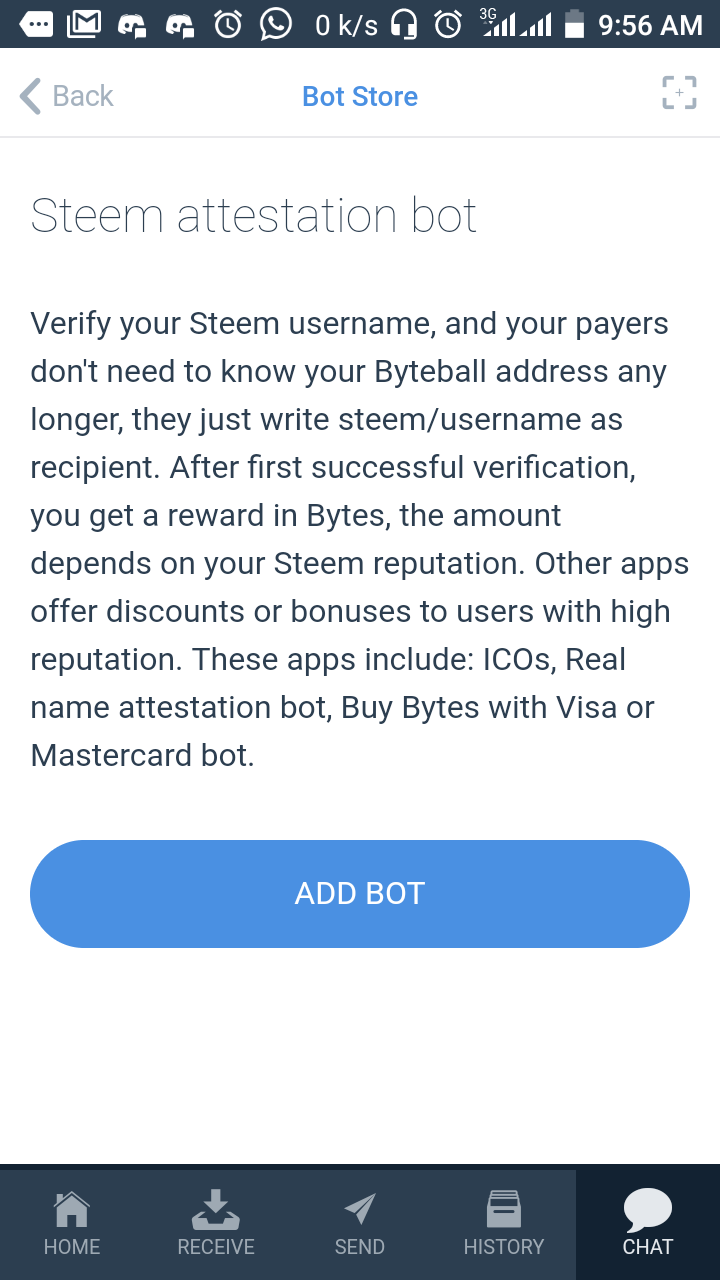 2. Go to chat, select bot store, scroll down and click on Steem attestation.