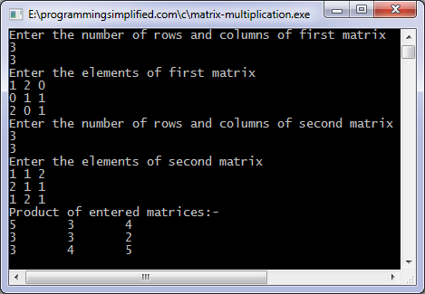 printf("Product of the matrices:\n");