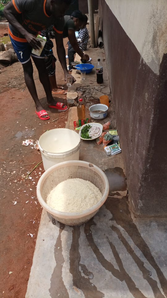 After eating, I used my phone browsing for some time because it was still early to go to the field. I had two friends who had their birthday and one was my team mate and the other was my opponent for the semi finals. my team mate by name kala prepared food so that we can eat after the match
