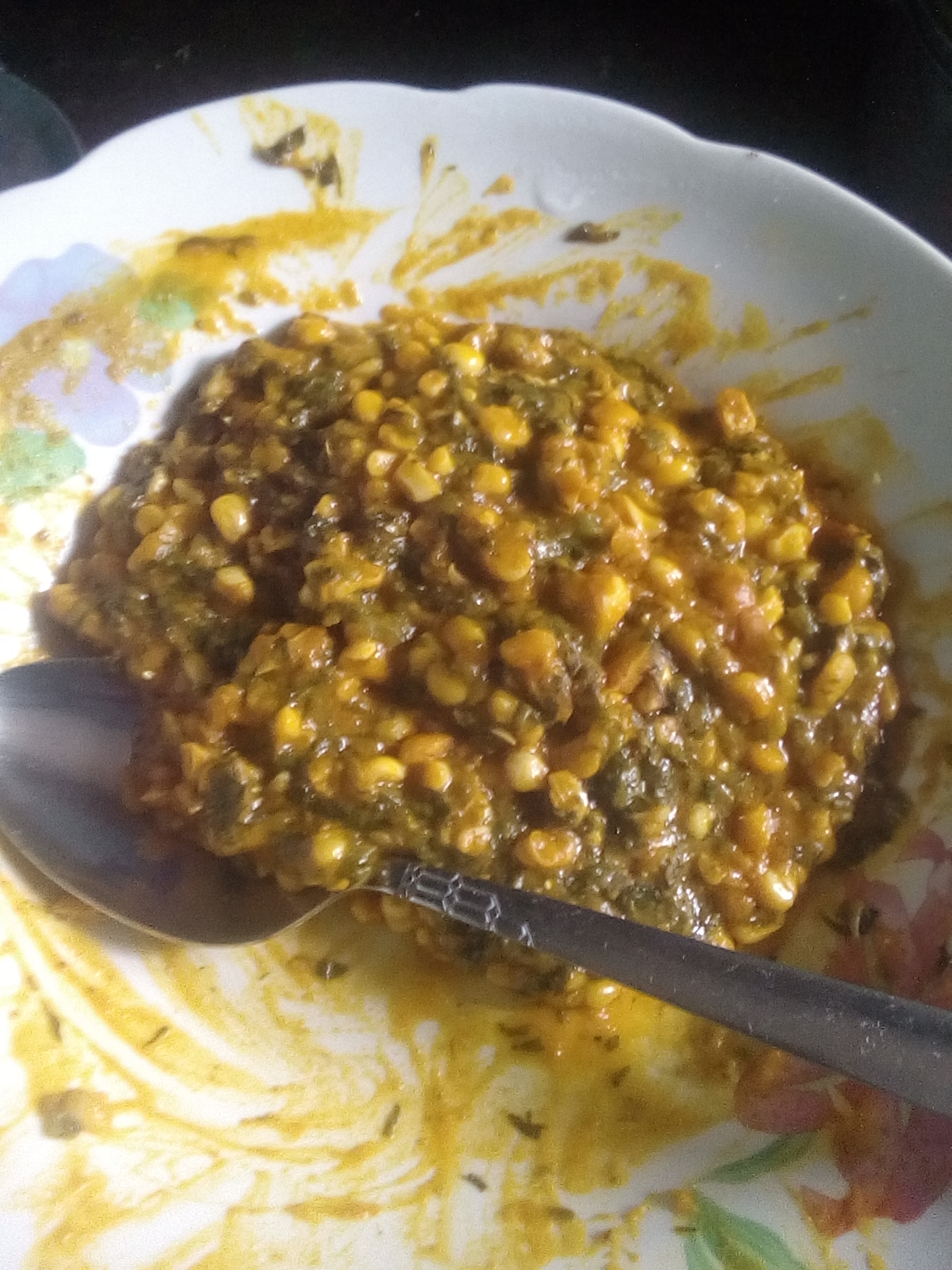 En effet,il s'agit d'un repas traditionnel communément appelé «sangha».c'est un mélange de maïs pélé ,de légume encore appelé morelle noire,de pulpe de noix de palme.C'est très appétissant ,car ça donne l'énergie.