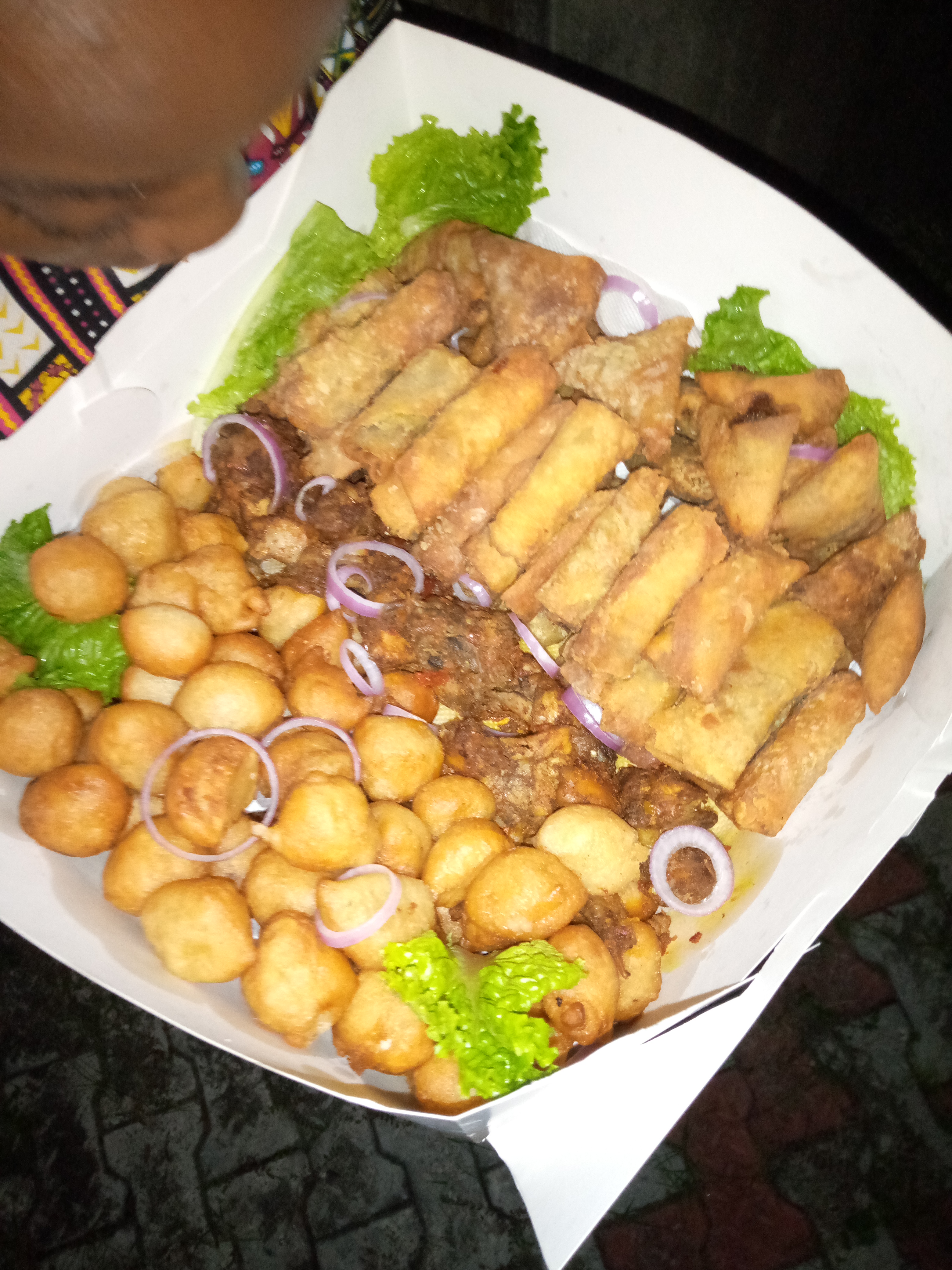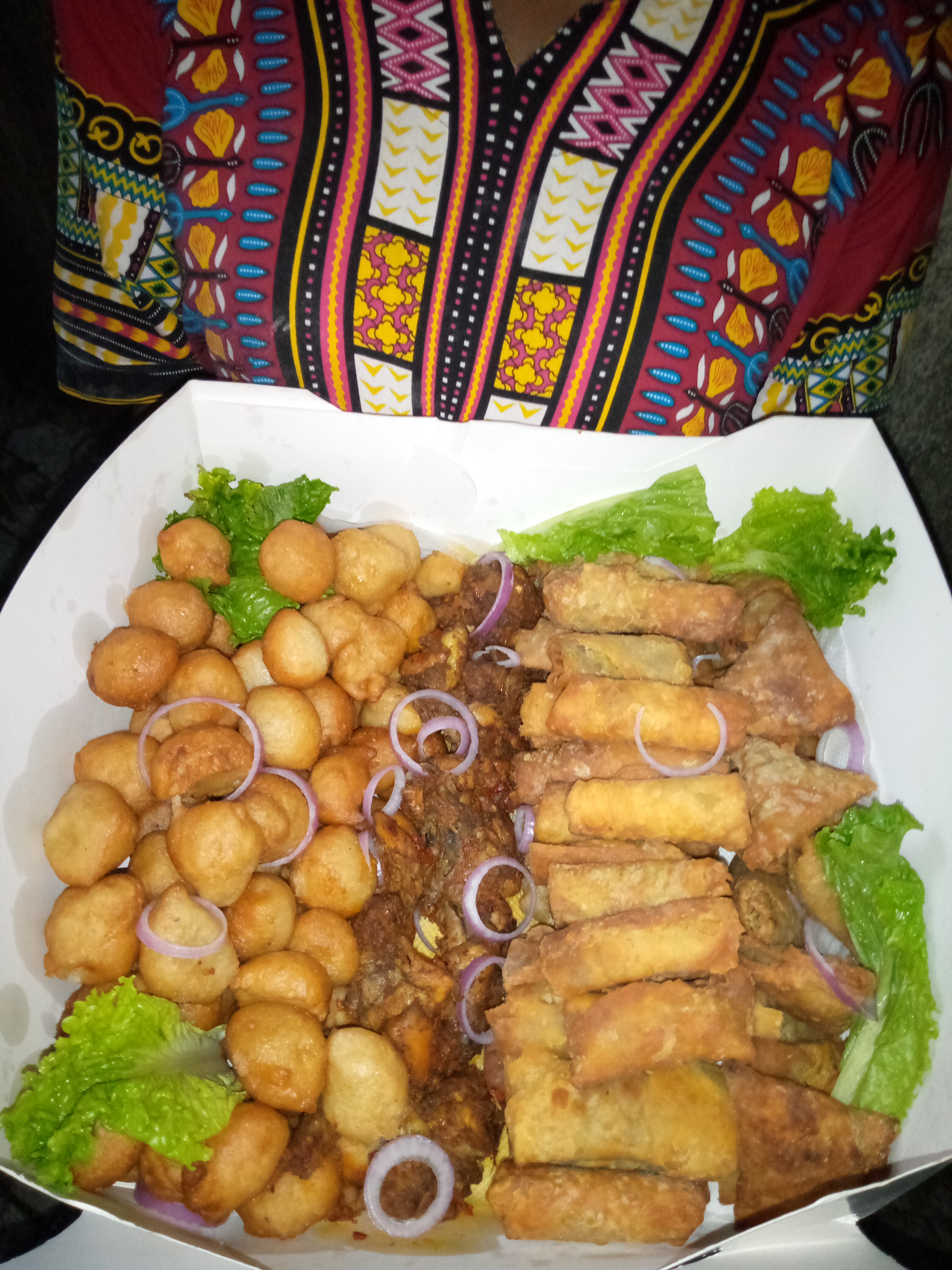 I left alongside my friends to one of our friend's house to help her prepare small chops (i.e puff-puff, spring roll and samosa) and peppered chicken.