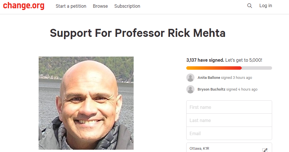 There has been a social media campaign against professor Mehta in the past. A petition at change.org was set up to get Mehta removed from his position.
