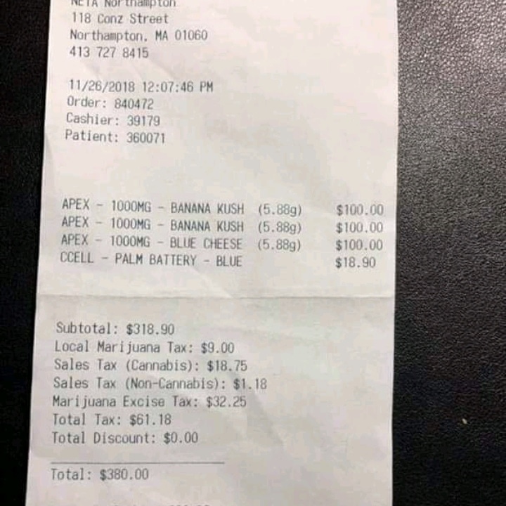 Taxachusetts for stonerscrisppoker (42)in #cannabis • 7 years ago (edited)Here's a peek at the taxation on cannabis freedom if you want a few vape carts and a pen in good ole Massachusetts $360 for an oz of flower or grow grow grow... Notice a marijuana and cannabis tax ..I give up #smokenetwork #canna