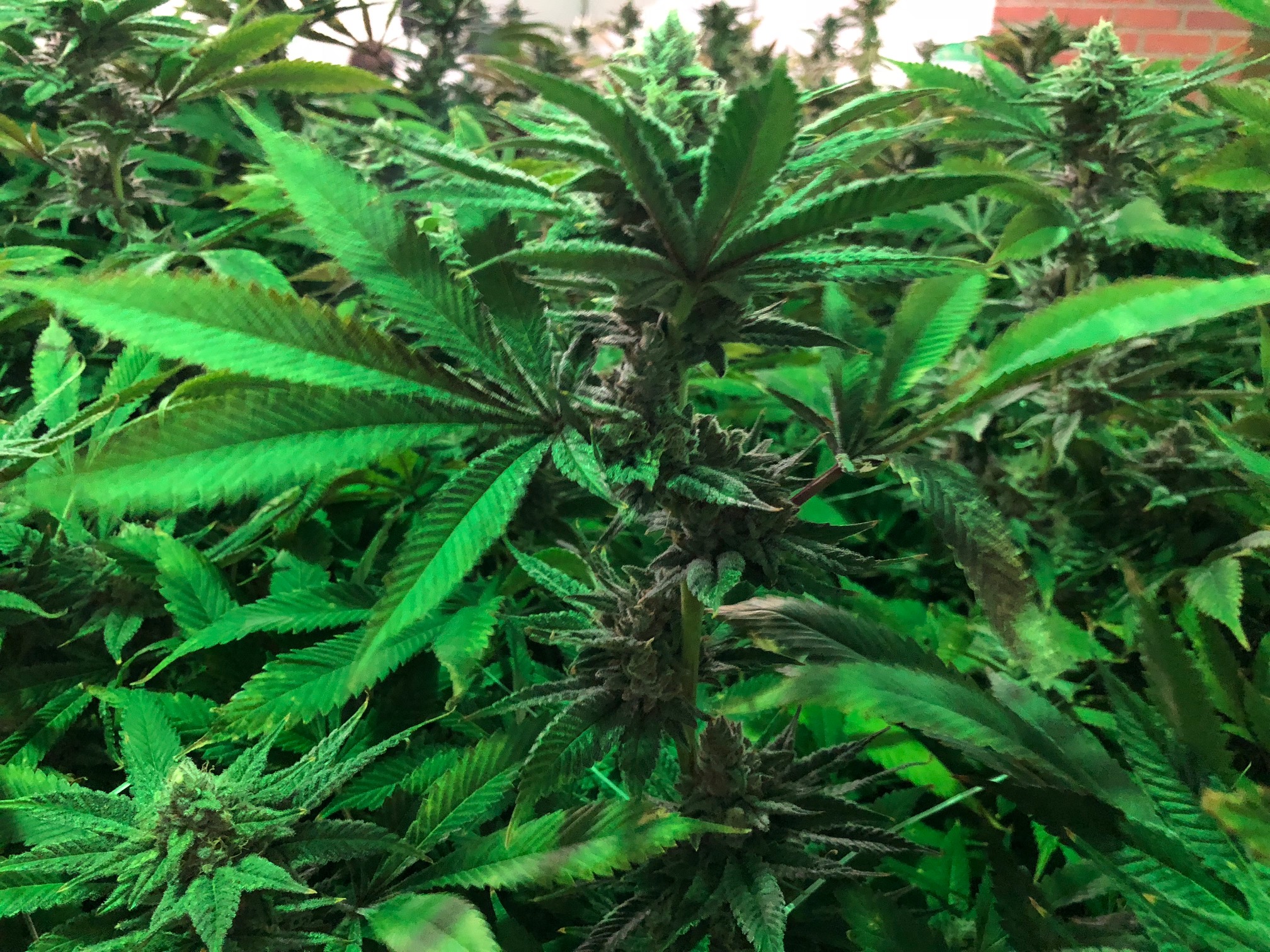 This particular strain is a fast growing, but sensitive. It also doesn't typically produce large buds. It is difficult to tell from the pictures because the room has green lights, but the buds are purple in color.