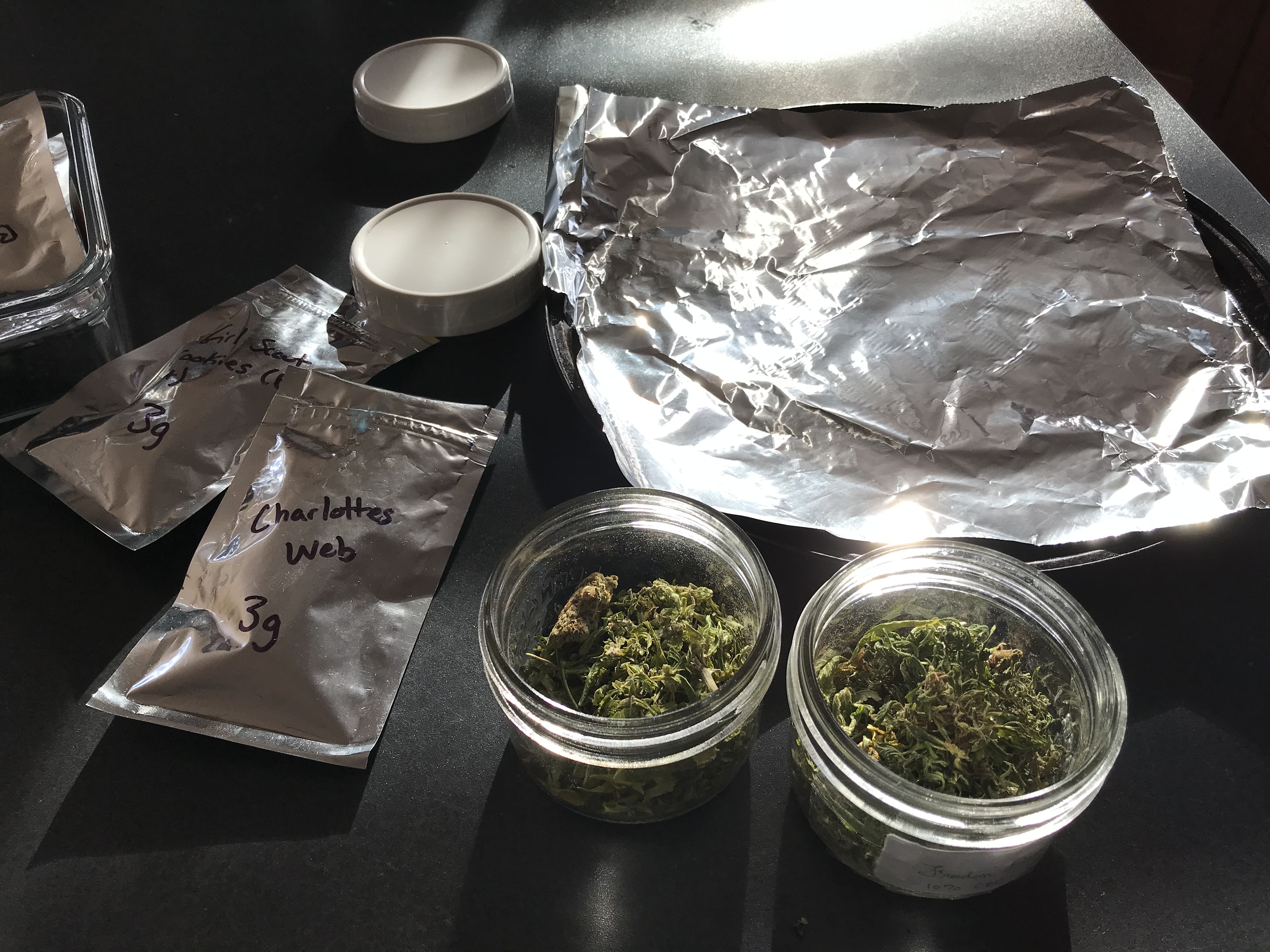 This afternoon I Decarboxylated some more of my Freedom Dream High CBD flowers and leaves to use in my High CBD Tea........ and I found 54 more seeds to plant.