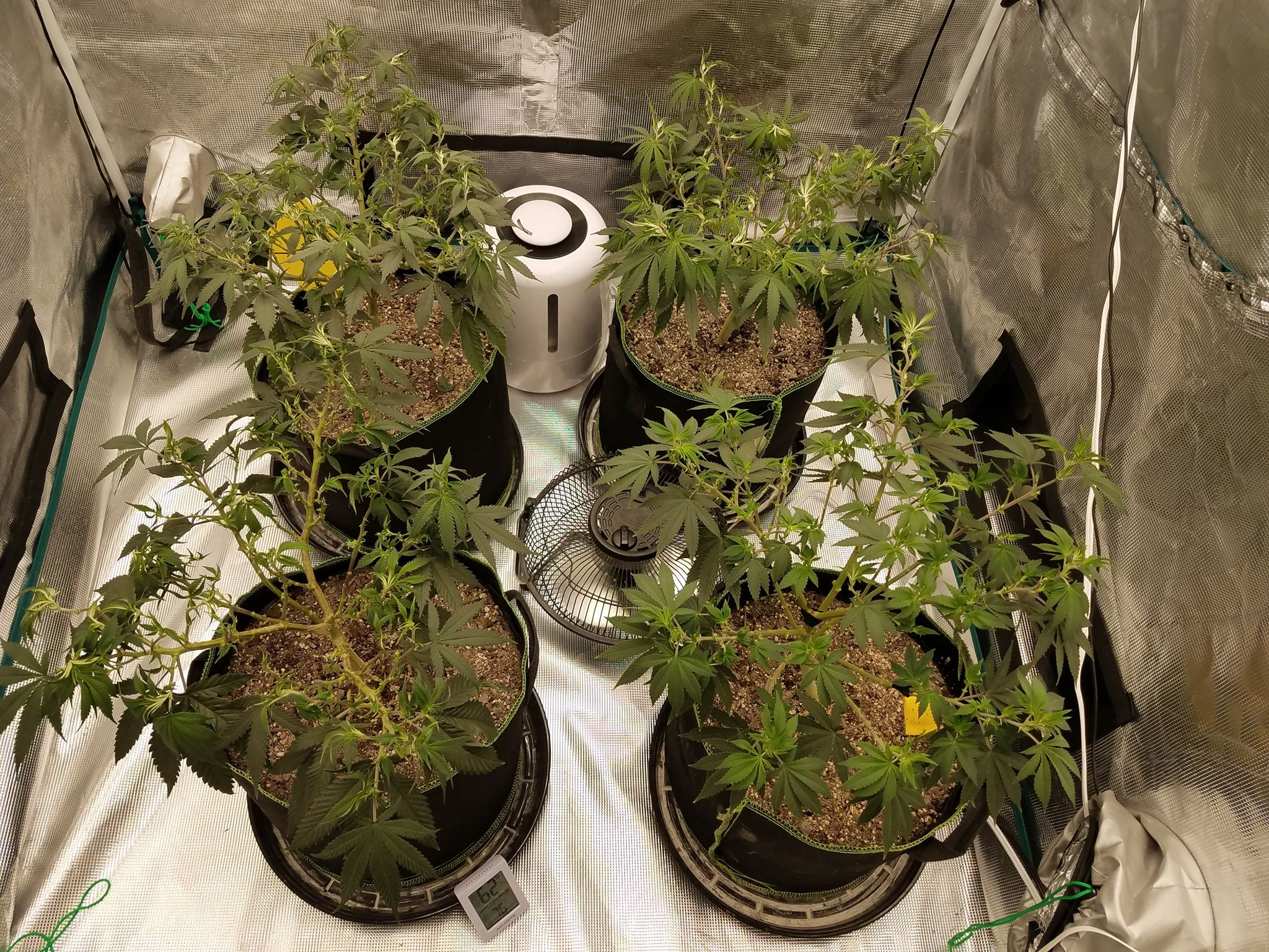 I stripped the plants down very heavily last night. I took the clones off them then went through and defol'd real hard. I lollipopped them a bit, taking off a lot of the under canopy. The middle of the canopy had too much competition and tons of small leaves. I'm hoping with less competition they will start to shoot some larger fan leaves out.