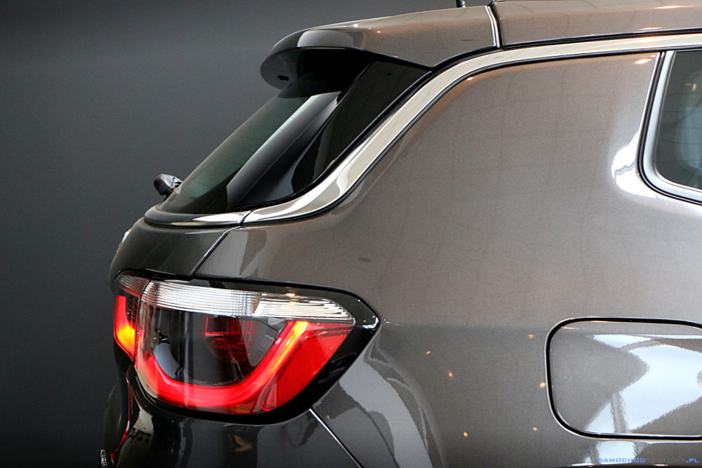 Today photo taken in car service. Beautiful gray/brown Jeep Compass on gray background.