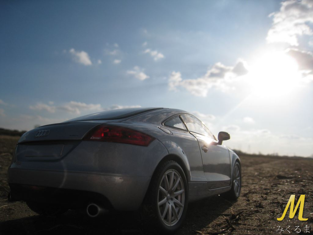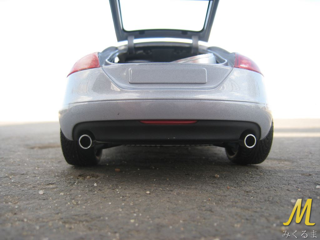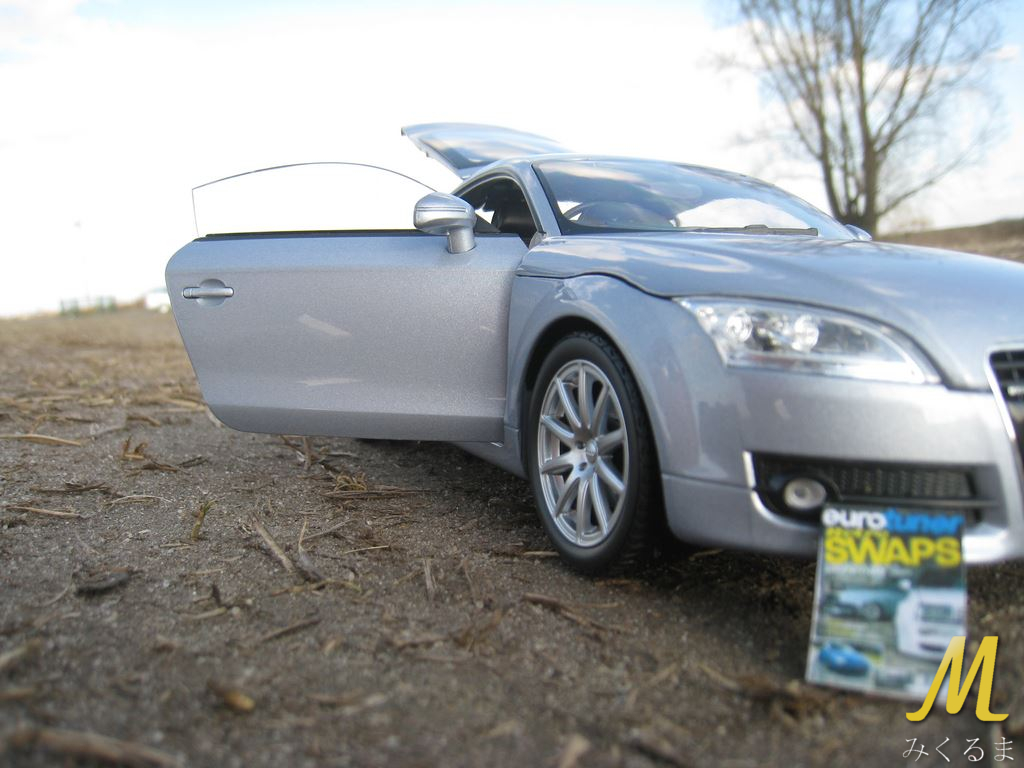 Today I present you another VAG that I had in my collection. My "Audi gang" contained TT model produced in 1:18 scale by Minichamp's (also called Paul's Model art). Sadly I bought it with damaged left taillight :/ Anyway, check the pictures of outside :)