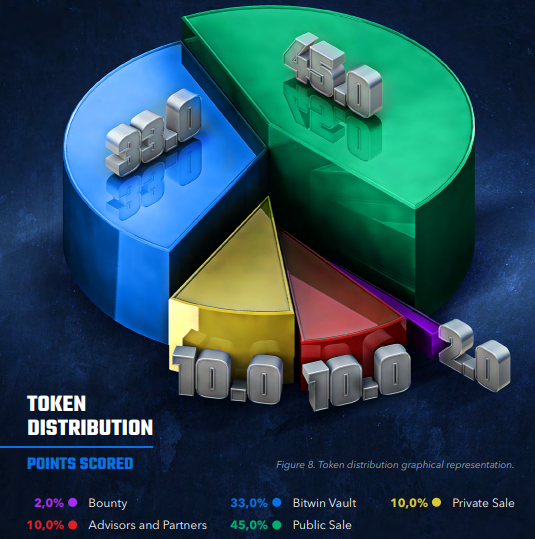 Bitwin Vault - Bitwin Vault will freeze BWT tokens for 6 month period after the launch of Sportsbook section, and it’s sole purpose will be to provide liquidity. The company risk management team will set up wagers with players until there is enough liquidity, that players can take bets against themselves. After the 6 month period, 50% of the tokens remaining in the Bitwin Vault will be released to team members.