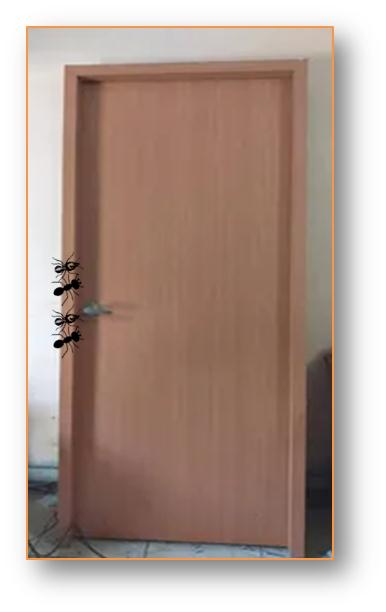 Hace un tiempo comenzamos a oír un ruido en la puerta del baño de nuestra habitación, sonaba como un insecto comiendo madera, llamamos a un especialista en exterminar insectos, él revisó la puerta y nos indicó que tenía termitas, que había que hacerle un tratamiento con un insecticida especial.