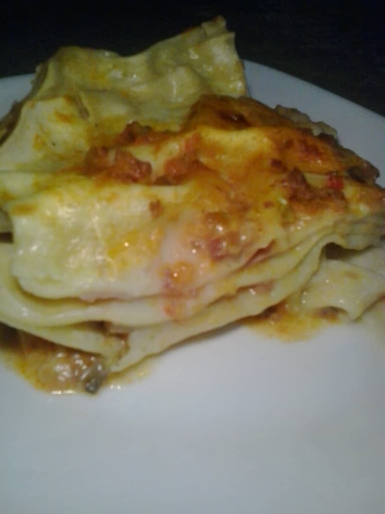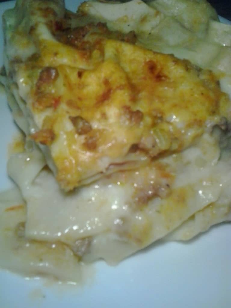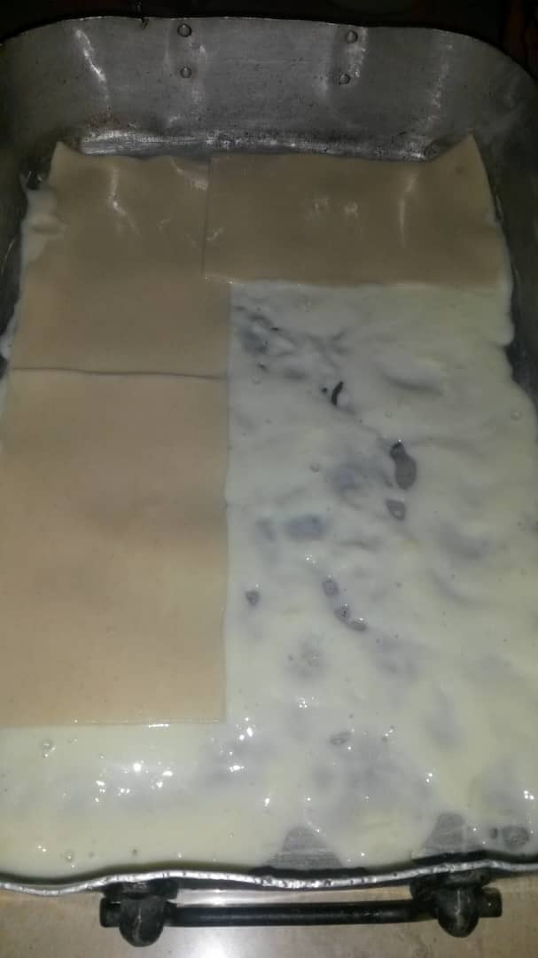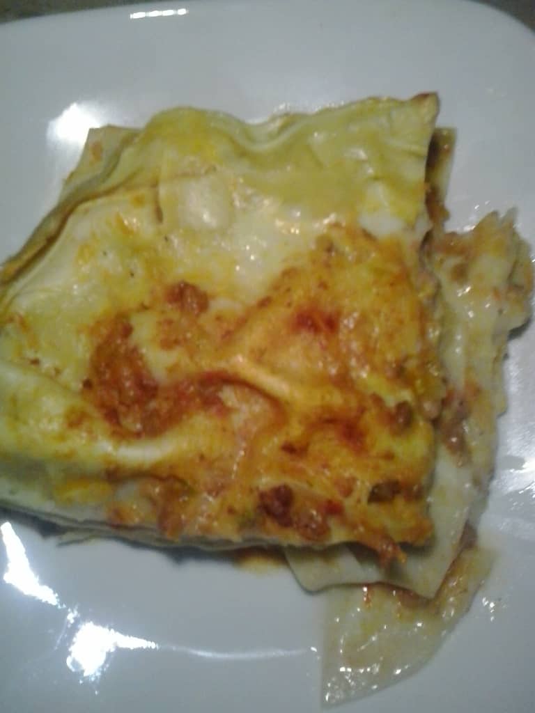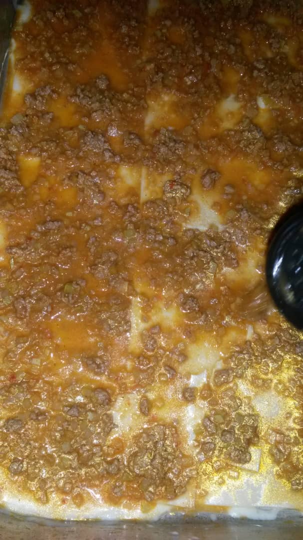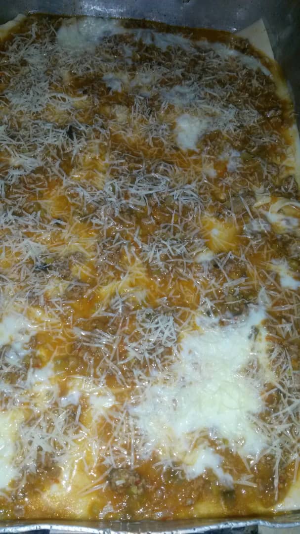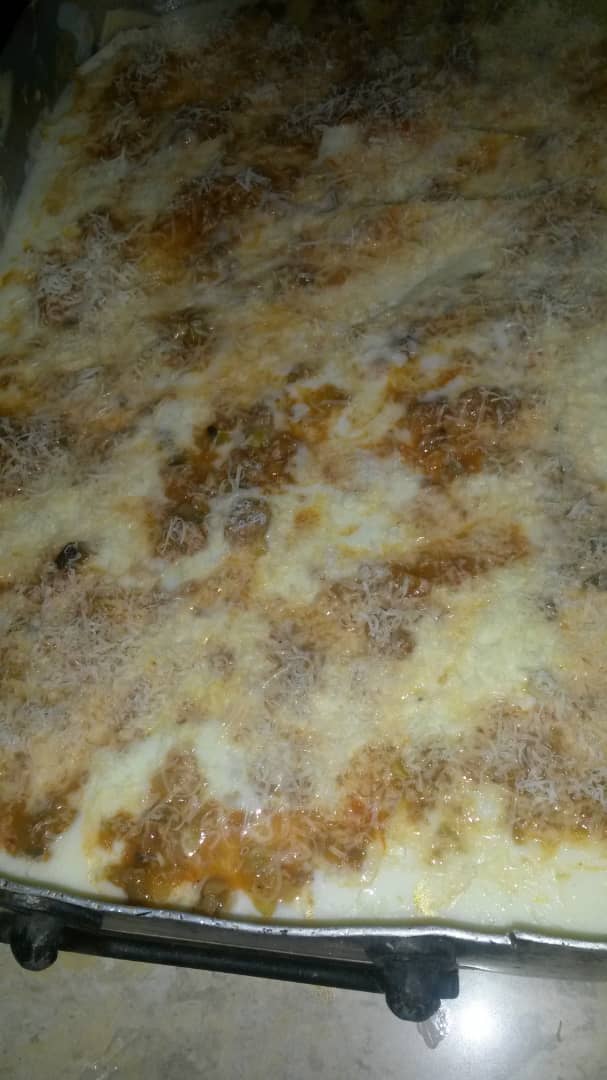 En un molde rectangular colocar una capa de salsa bechamel, una capa de pasta en las hojas instantáneas y una capa de carne. Continuar con este orden hasta terminar los ingredientes, y por último colocar el queso parmesano rallado. Cubra el molde con papel aluminio y lleve al horno por 45 minutos a 180 °. Retire el papel aluminio y déjelo en el horno por unos 5 minutos más hasta que gratine el queso. Retire del horno, deje reposar la preparación y sirva.
