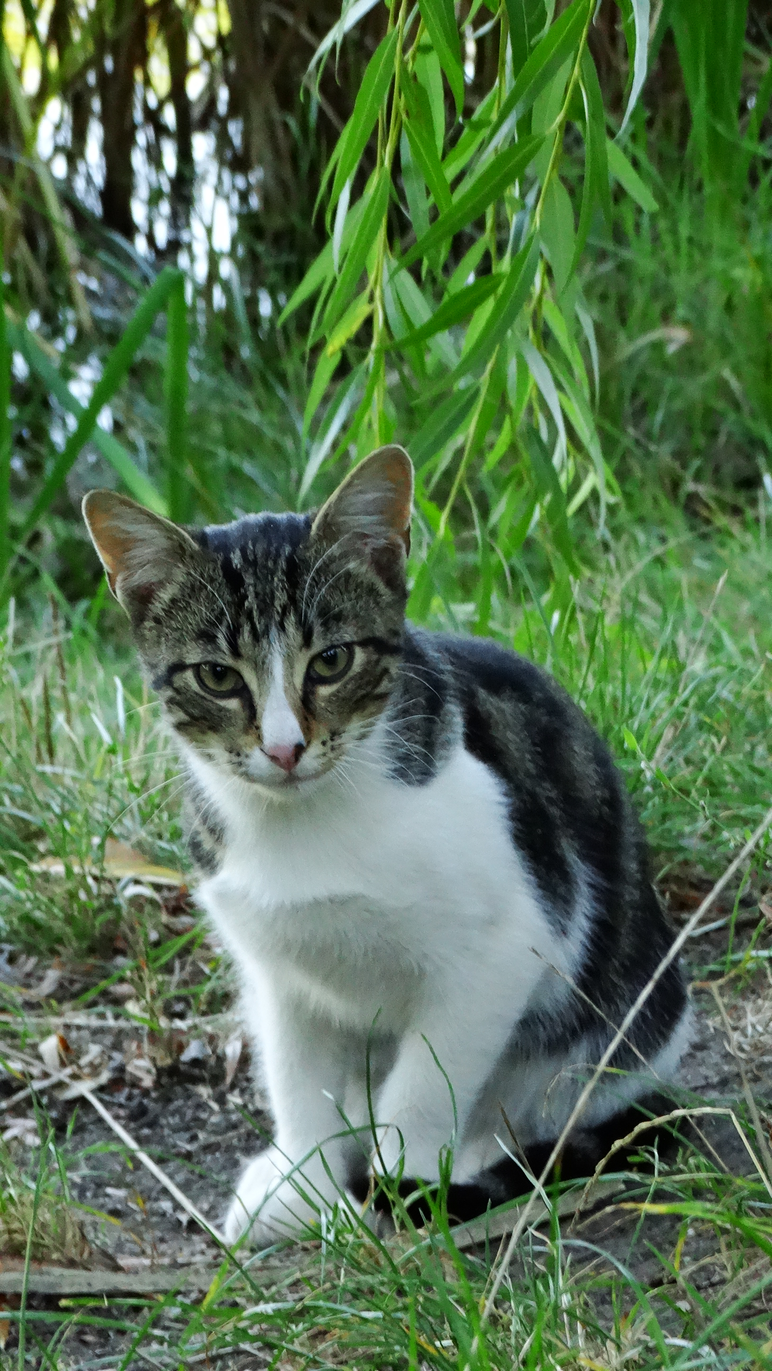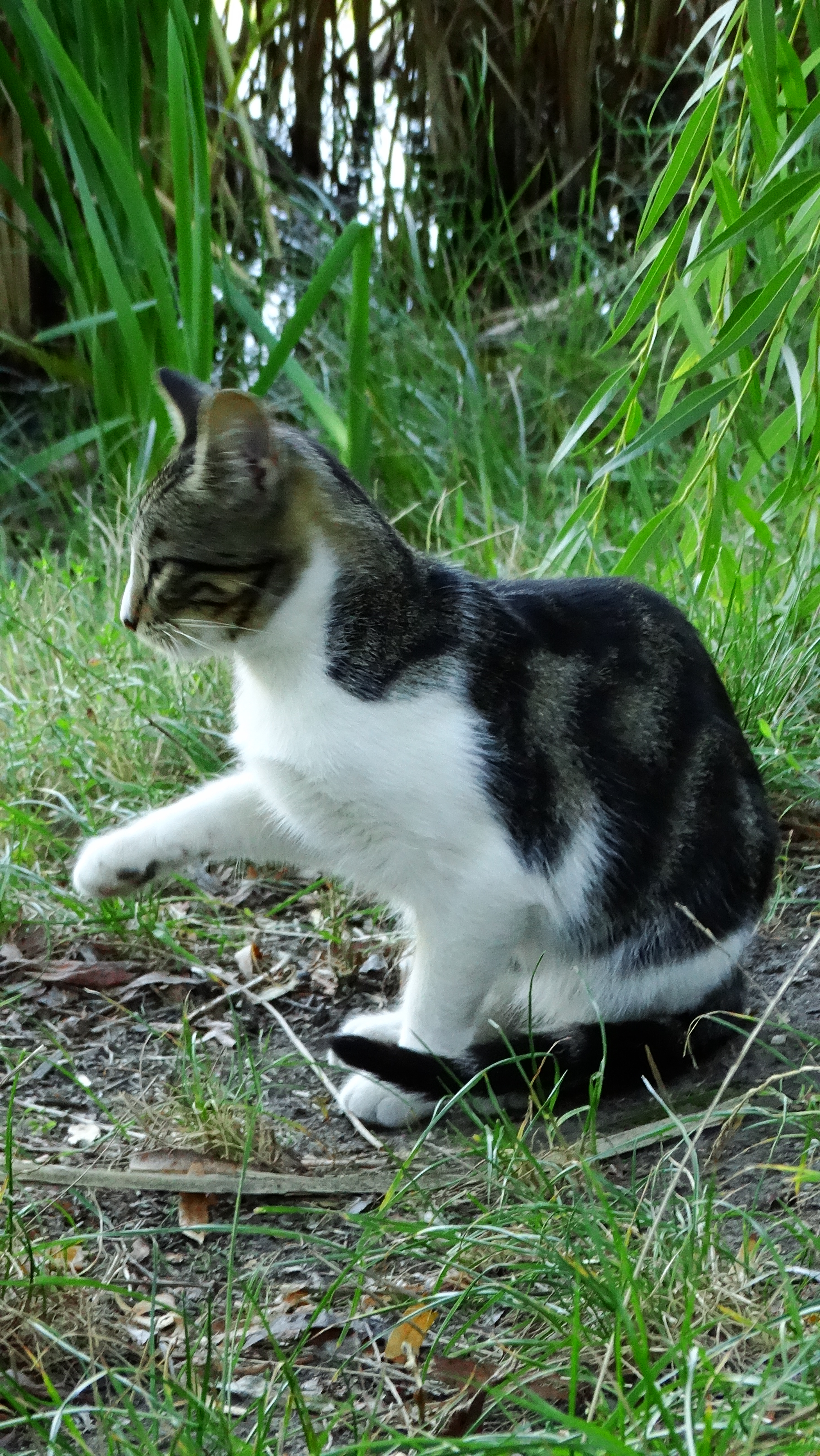 This cute kitten lives near the lake. He gets his food by work, this is a positive mood, which he gives wholeheartedly to fishermen. Fishmen can always find small fish for cat food.