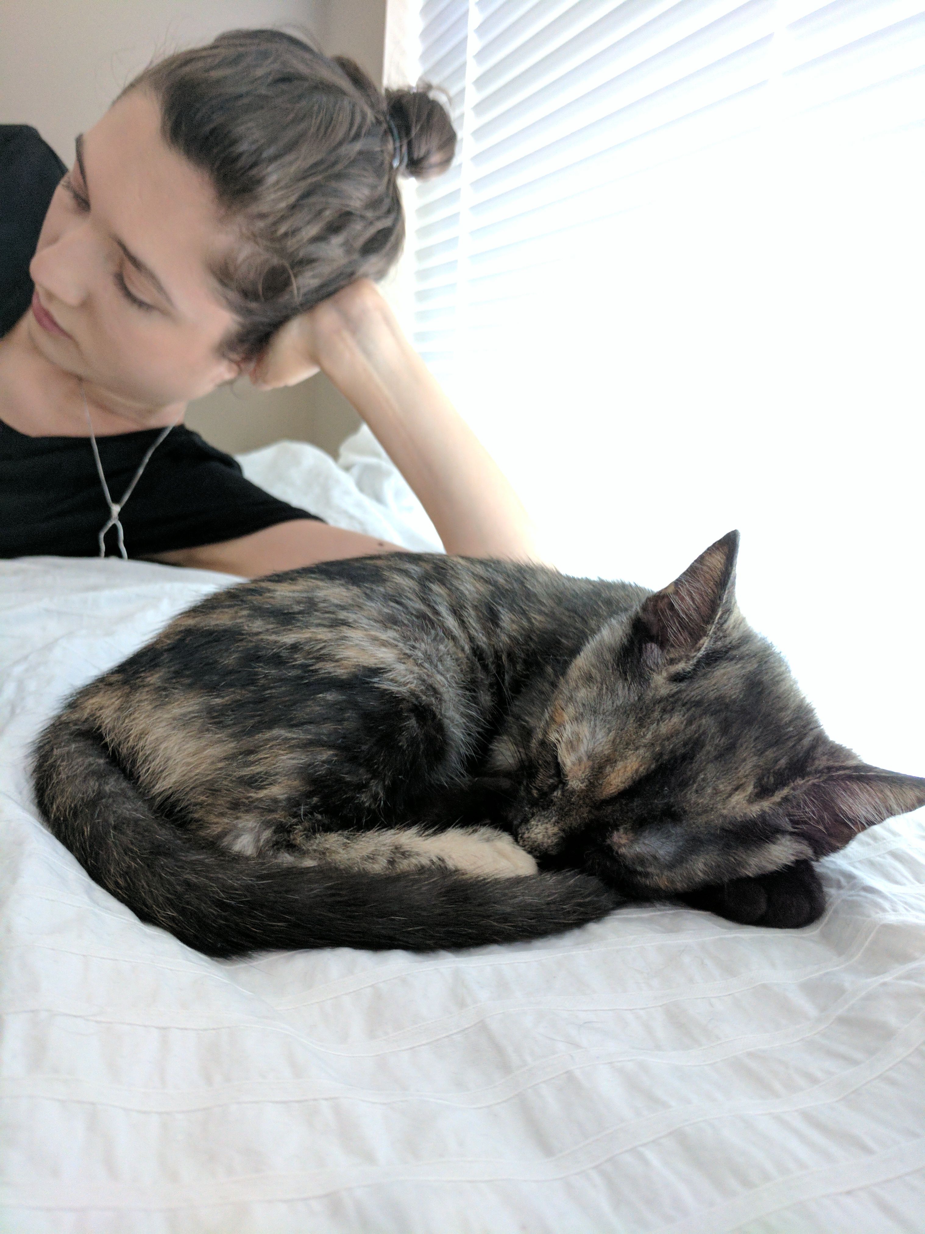 Hi! I'm Lou, a 3 months old tortoiseshell kitten. I like to unplug phone chargers from the wall, and wake up my mom @maiya.akhmet and dad @korynewton at 3 am every night.
