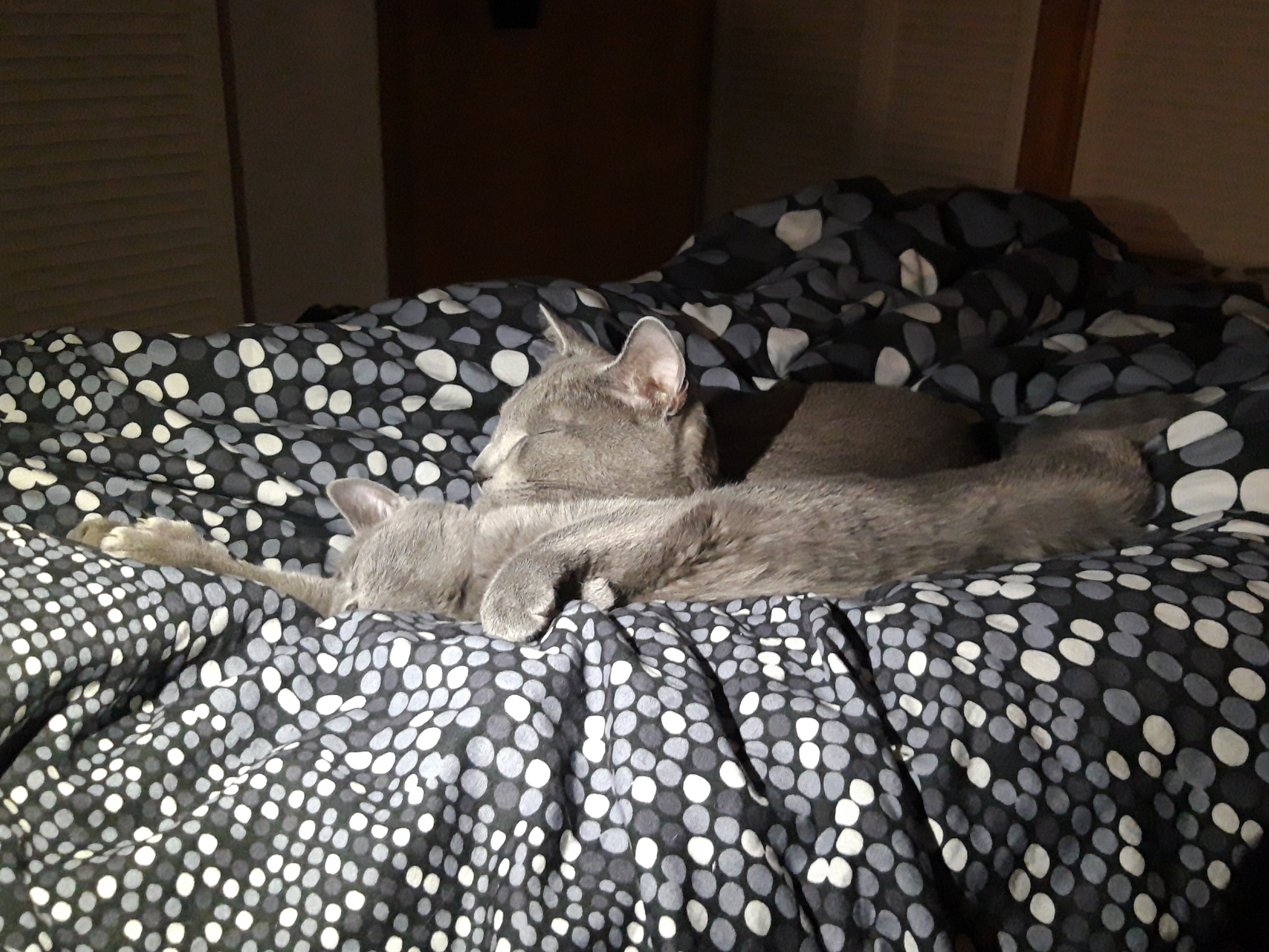 It is #caturday again ! Today I actually wanted to show you something different, but when I wanted to lay down to bed, still thinking about my caturday post, I found it suddenly occupied by Jeremy and Nami. They were cuddling with each other and it looked so cute that I decided to write this one from the couch instead and secretly took two pictures from them for you ;)