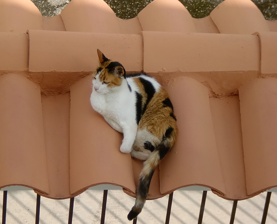 On this Caturday, Kitty the hunter, is totally relaxed. She enjoys abundant food. However, another cat has come to enjoy his food. It is a Siamese with a collar, evidence that it has an owner, but until now no neighbor knows who owns it. The new visitor is very clever and manages to enter the feeding area of Kitty when she is absent from the place. Surely Kitty will not take long to face this little thief.