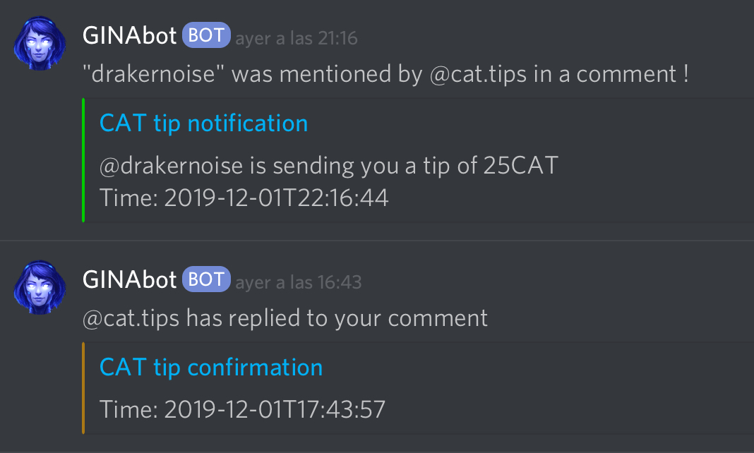 Once you have some balance you can tip others by simply adding “! CATtip” plus the number of CATs you wanna tip. Take a look on how I did it to you!