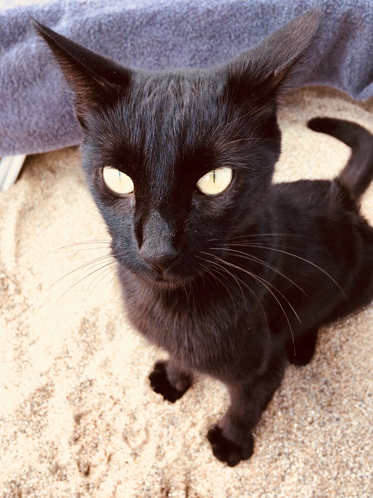 Hello dear steemian friends. This black beauty is the beach cat of Crete. #caturday saturday .