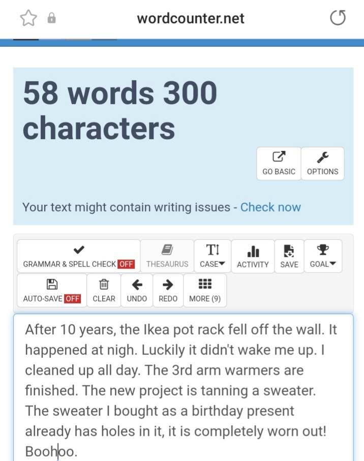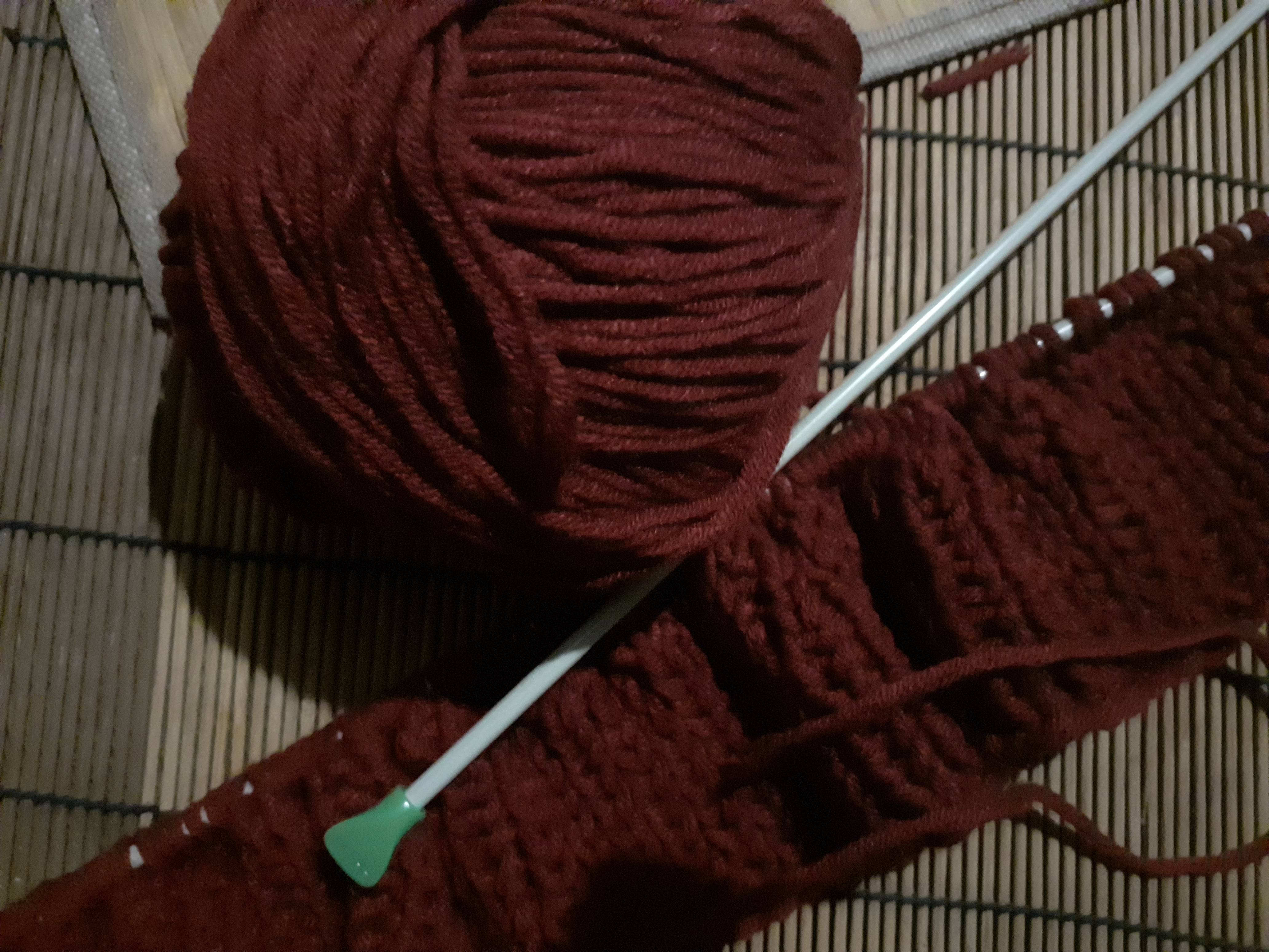 After 10 years, the Ikea pot rack fell off the wall. It happened at nigh. Luckily it didn't wake me up. I cleaned up all day. The 3rd arm warmers are finished. The new project is tanning a sweater. The sweater I bought as a birthday present already has holes in it, it is completely worn out! Boohoo.