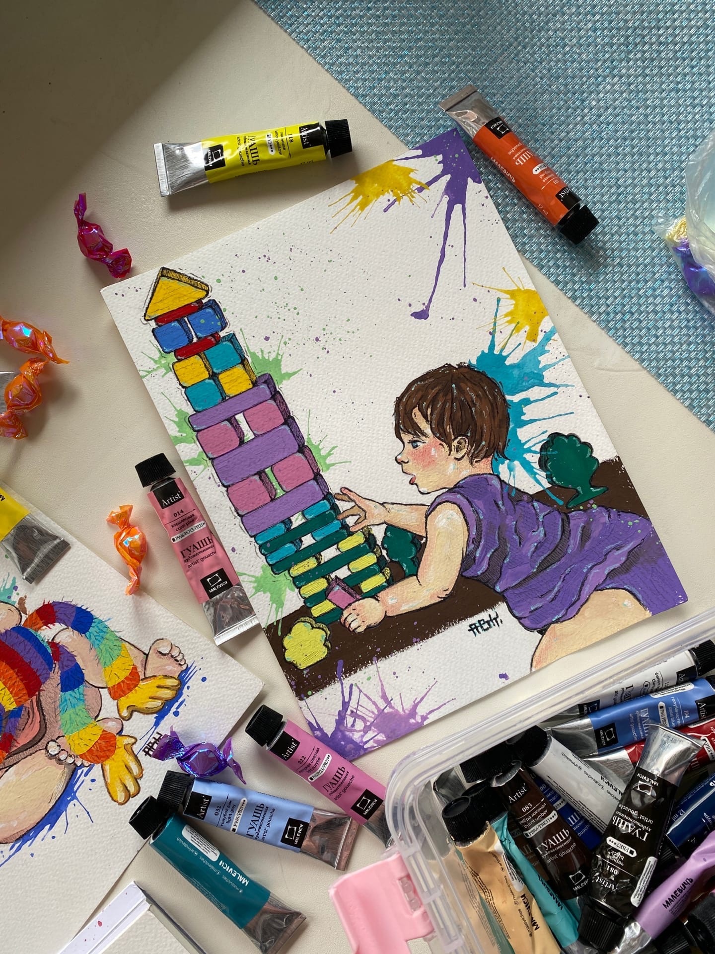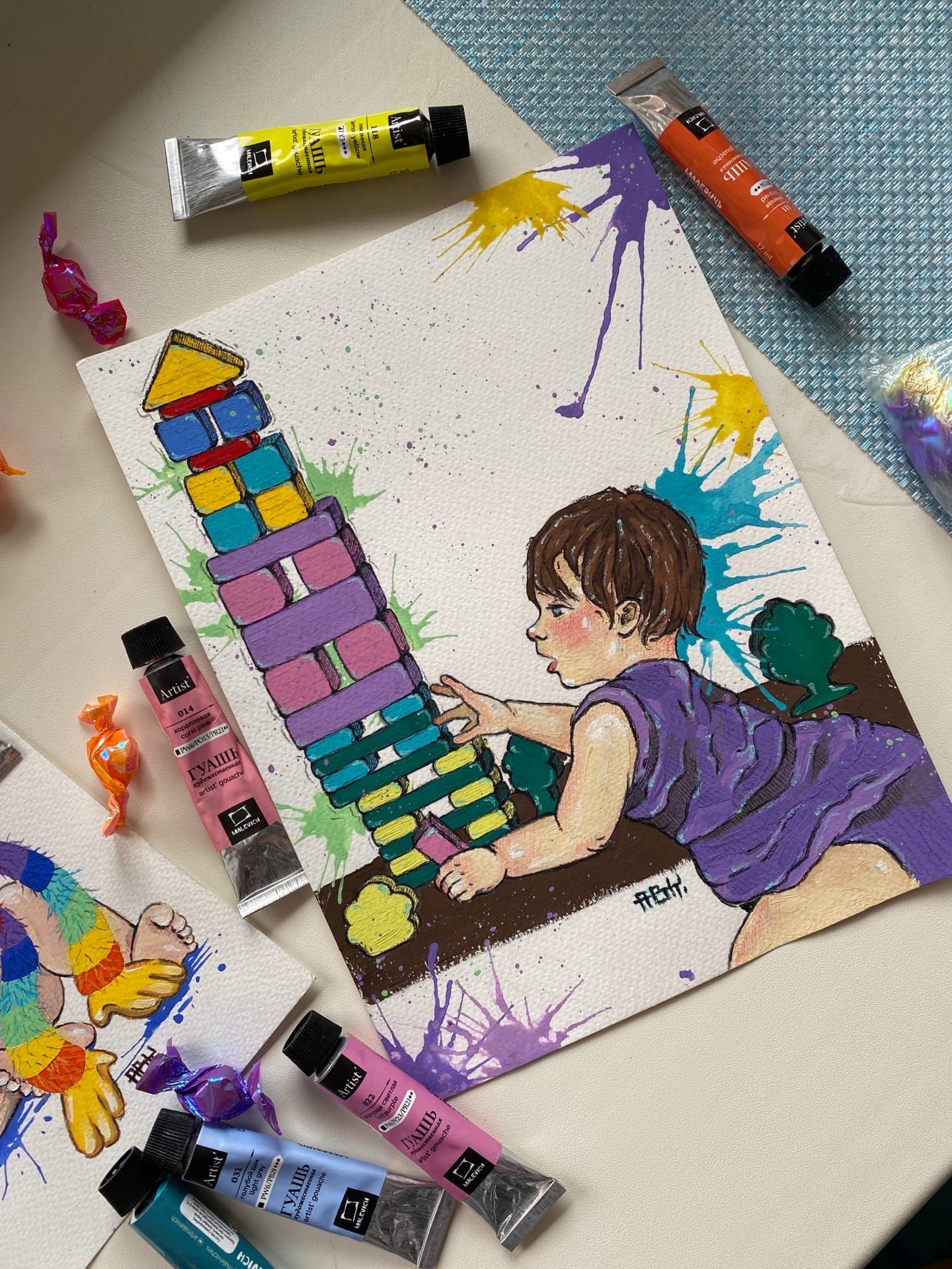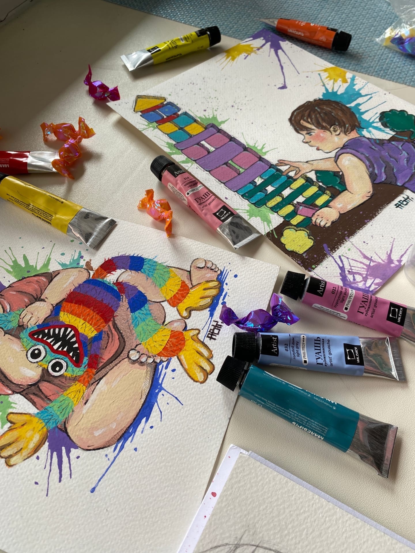 I often paint with watercolors, watercolors, watercolor pencils. And this time I wanted to paint with gouache.