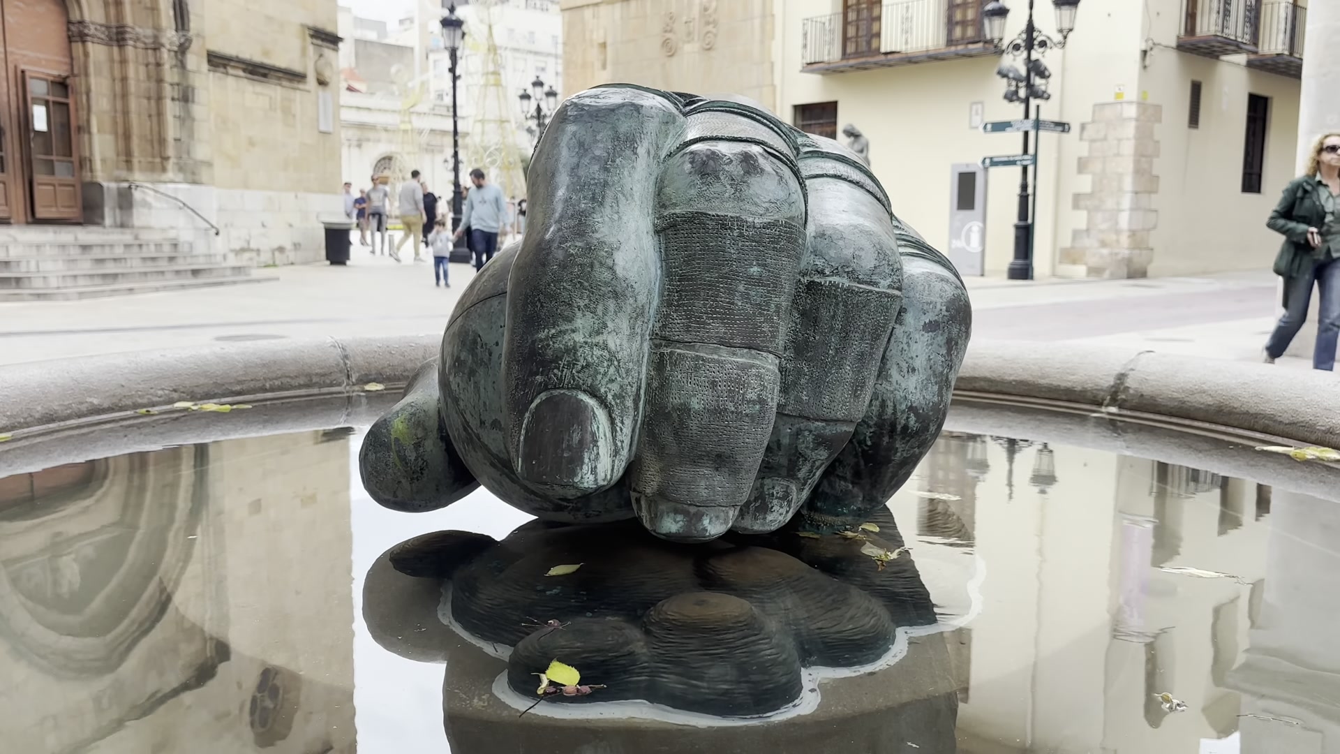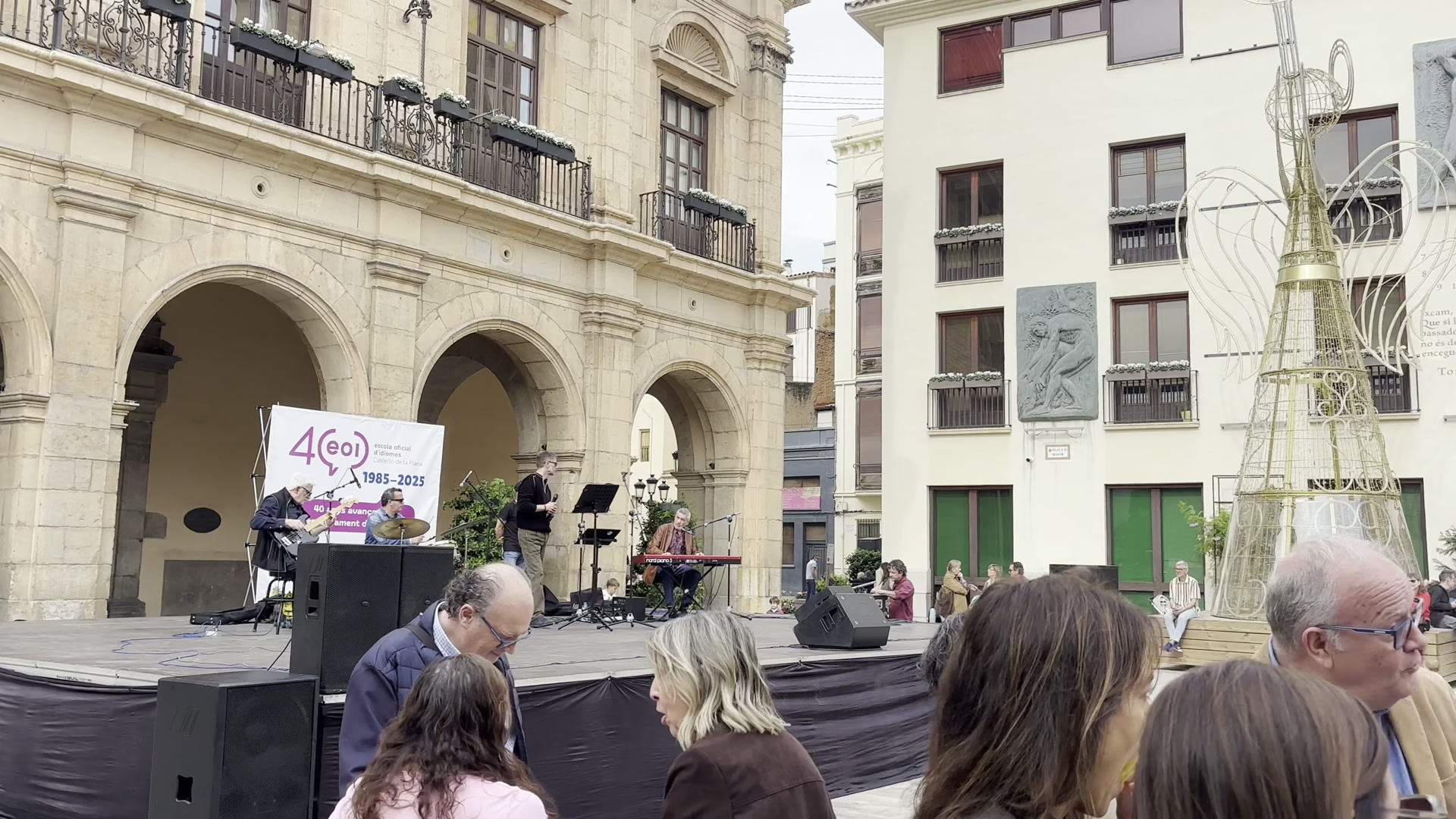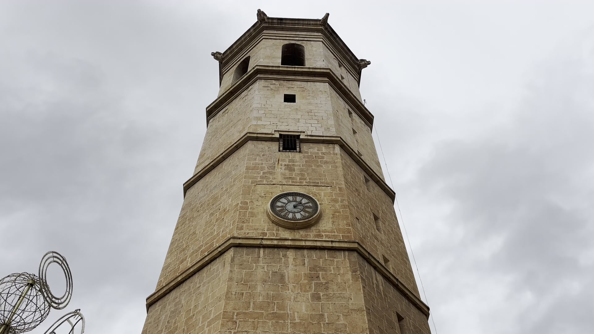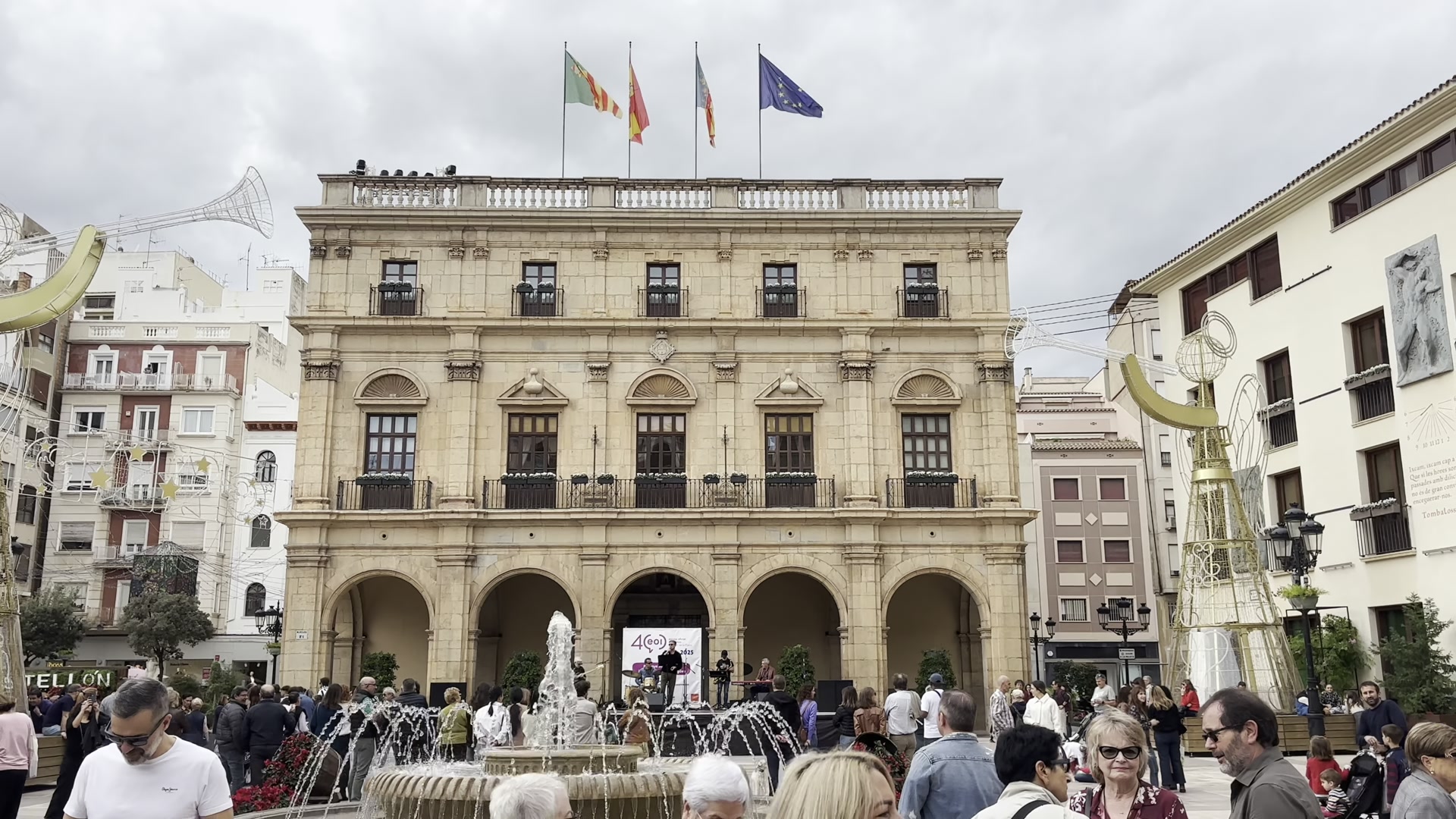I walked around watching the historic houses with their solid doors. The balconies are beautiful. The streets look similar to each other, with low-rise buildings. We reached the other end of the historic center, where the building stands in which Castellón’s representatives meet and local decisions are made. Nearby, there is another piece of modern art. Castellón has many of these and you can spot them while walking around the city.