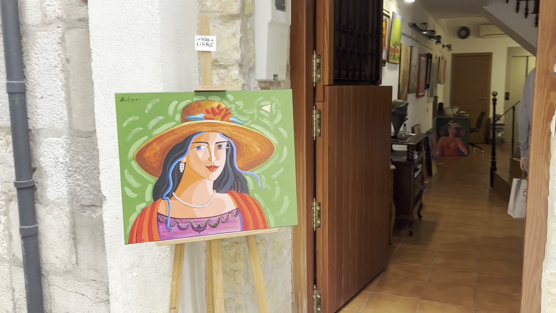 The view of the church from here is also very nice, with an interesting architectural style. I then returned to the narrow streets of the old center. This is Calle Mayor. Despite its name, it is narrower than the streets near the city hall and the church. There is an art studio here where they sell paintings and also offer lessons.