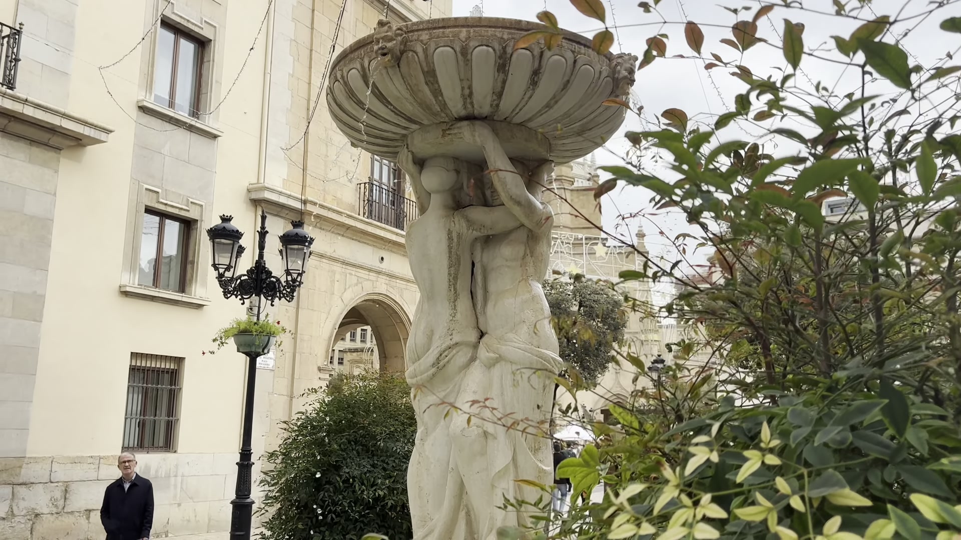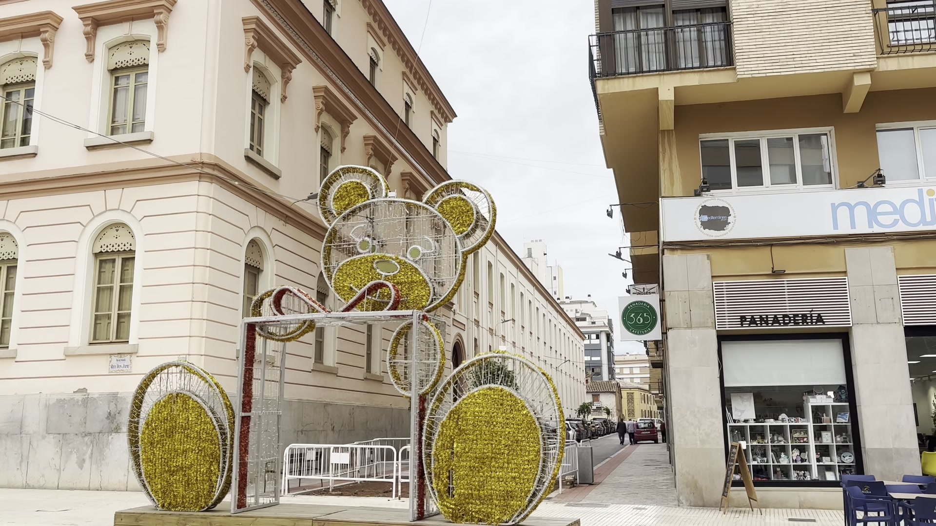 When I visited, the area was getting ready for the Christmas season and I could see decorations on the houses. I came across a very beautiful building, if I am not mistaken it used to be a casino and was later restored. It looks very harmonious next to the bank building beside it. This is a small intersection with a little fountain. In general, the streets in the center, as in most cities and especially in a provincial capital, are filled with public buildings, shops, pharmacies and various services like insurance offices and lawyers.