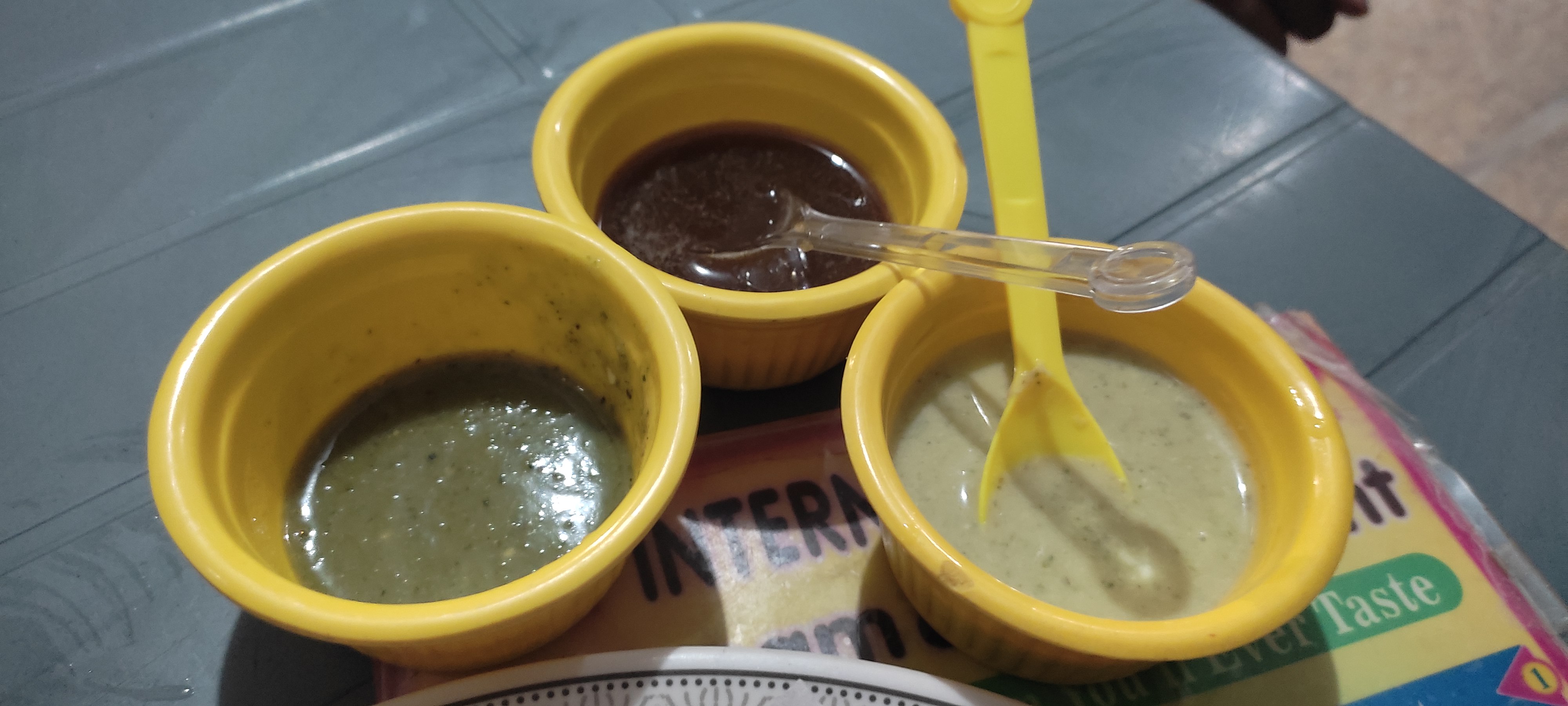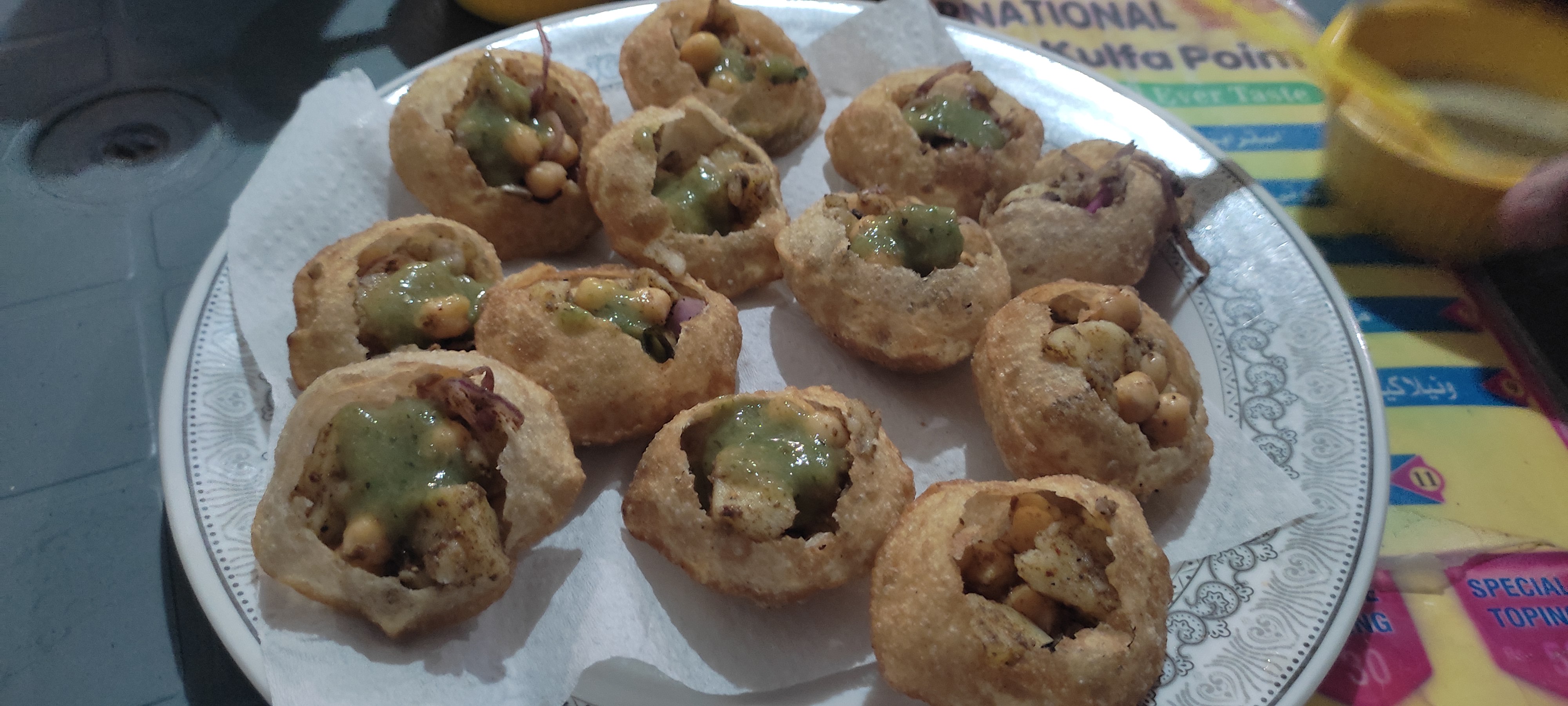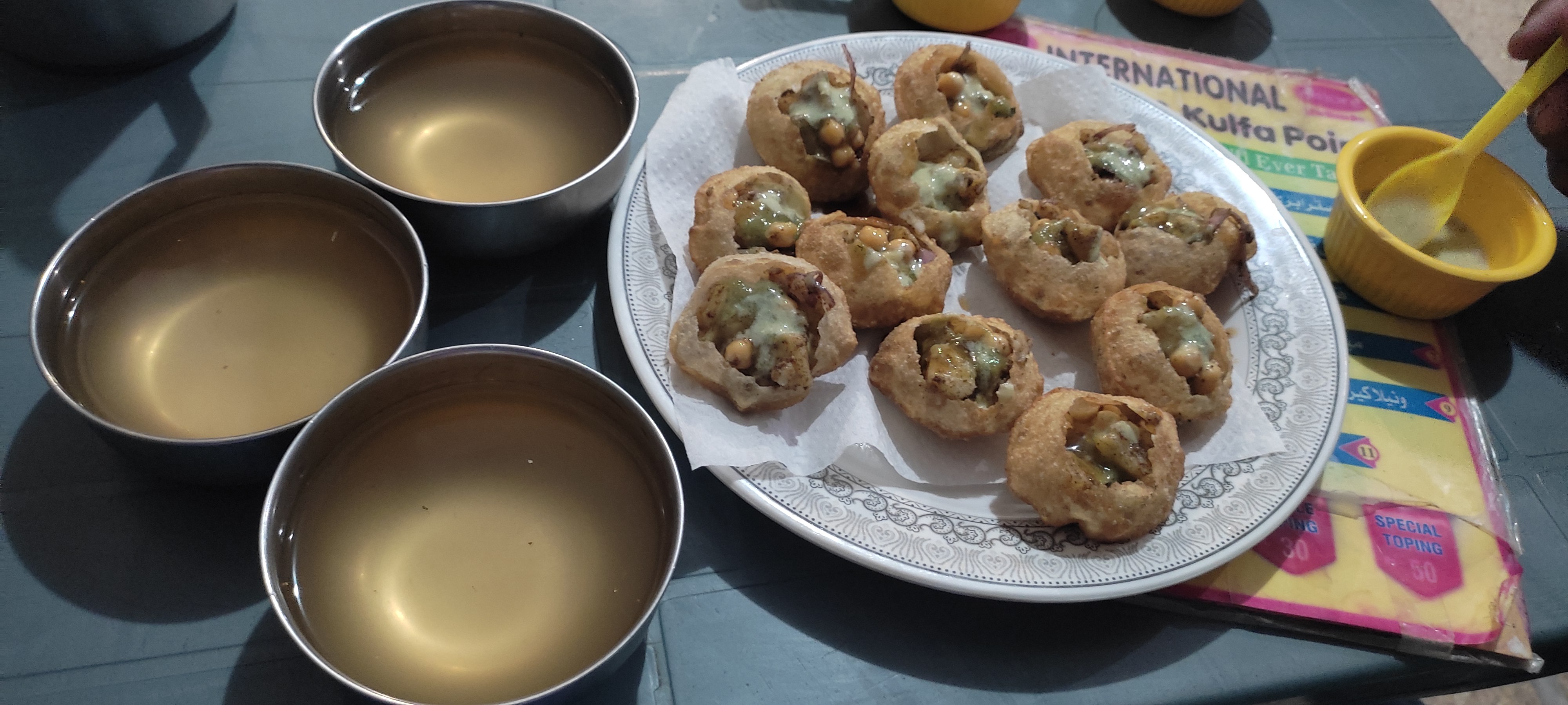 He brought goll Gappey filled with boiled potato and chickpeas. He brought sauces to fill in them. The customers can fill sauces according to their required taste and needs.