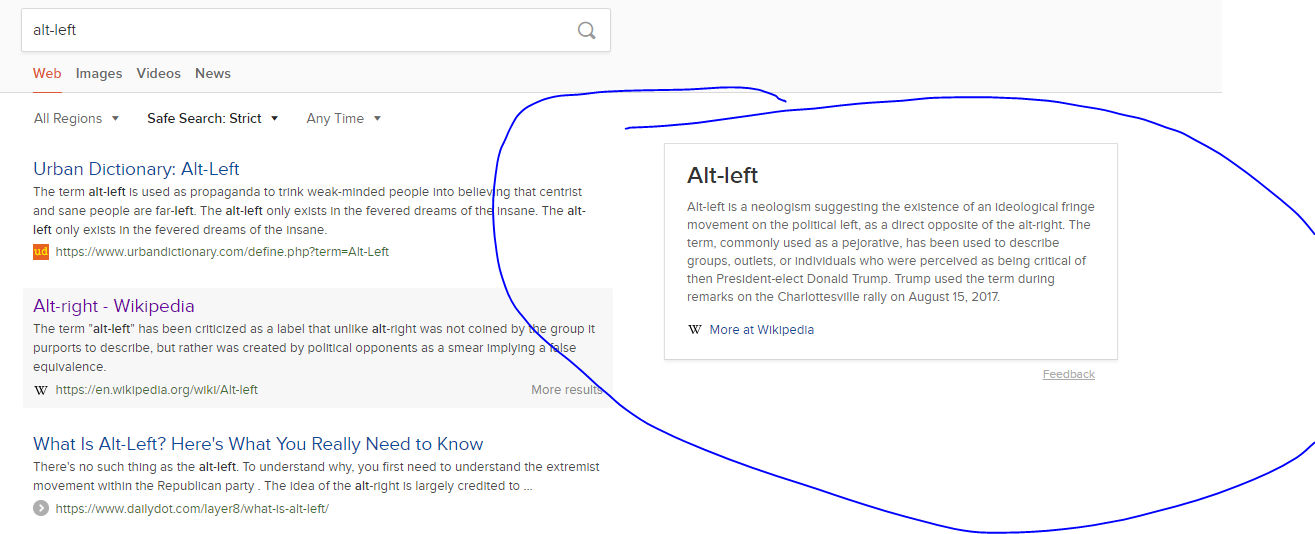 I didnt say it meant something else. I'm curious as to the origin of the existence of the term. I just find it funny how there is an alt right wikipedia page yet there is no opposite page for alt left. At the bottom of the alt right page you find a small blurb. When did this come into existance? When a label was created to describe everything that is disagreeable. Because people can not articulate their own views let alone the views of an opposition.