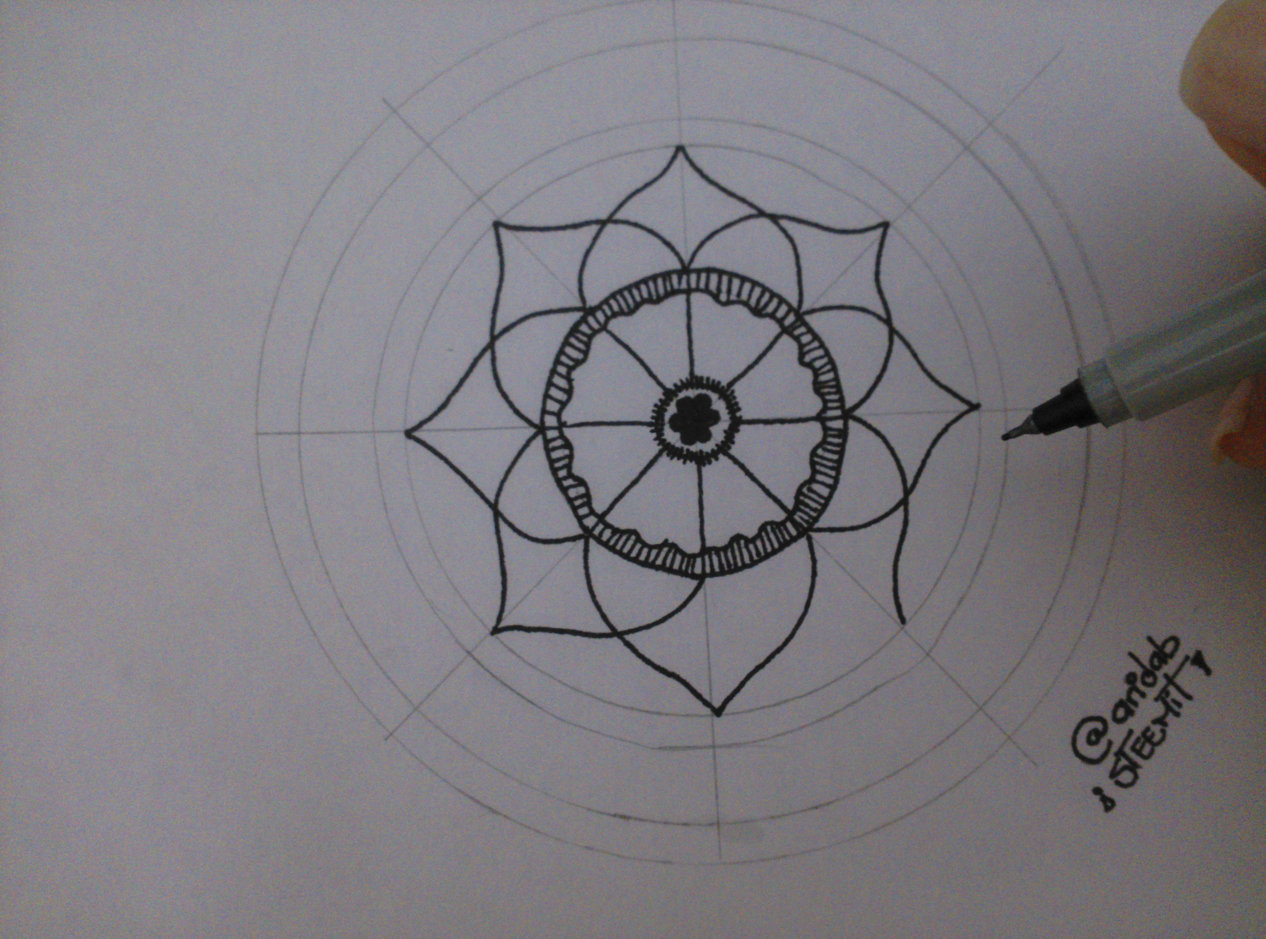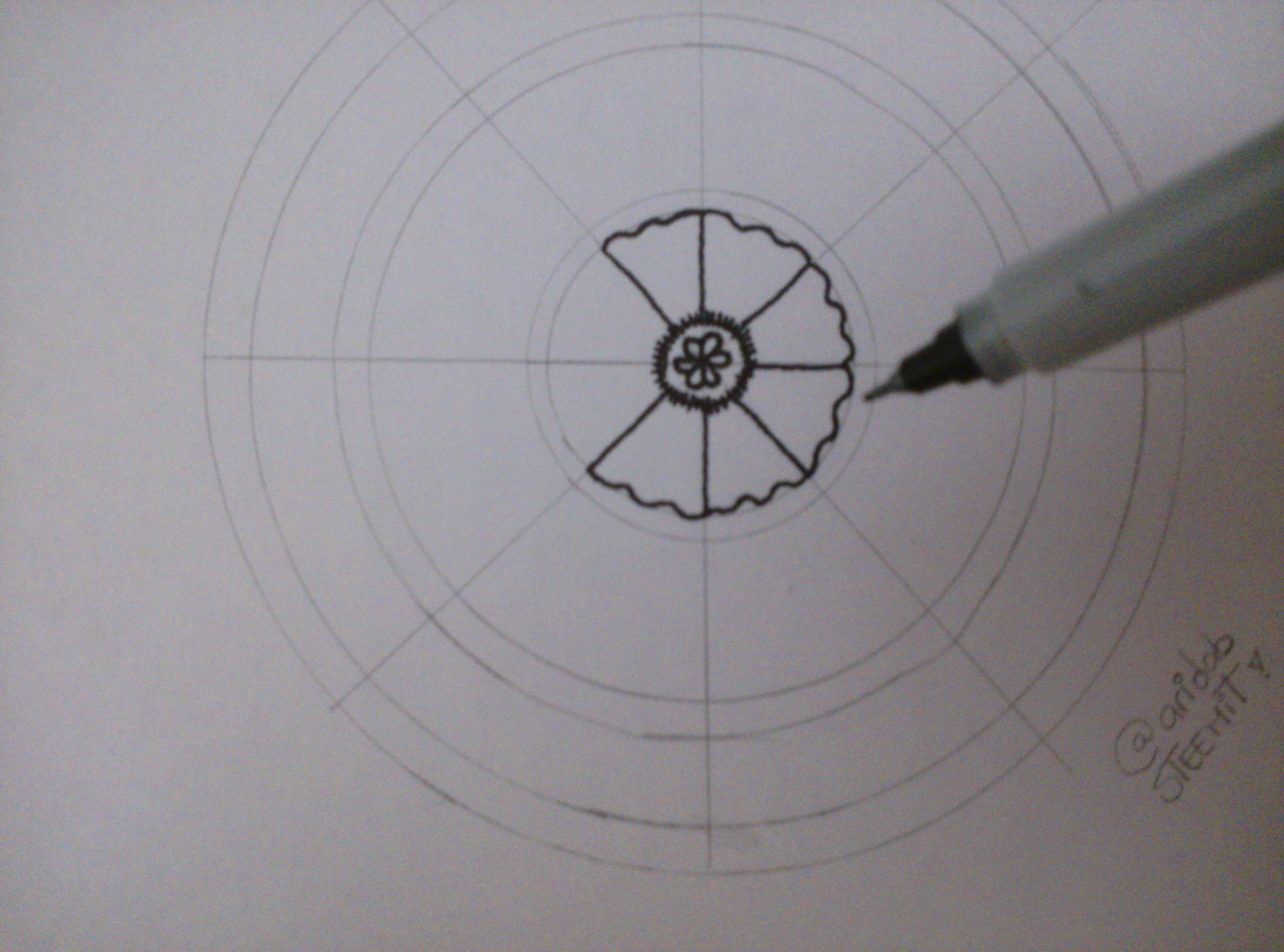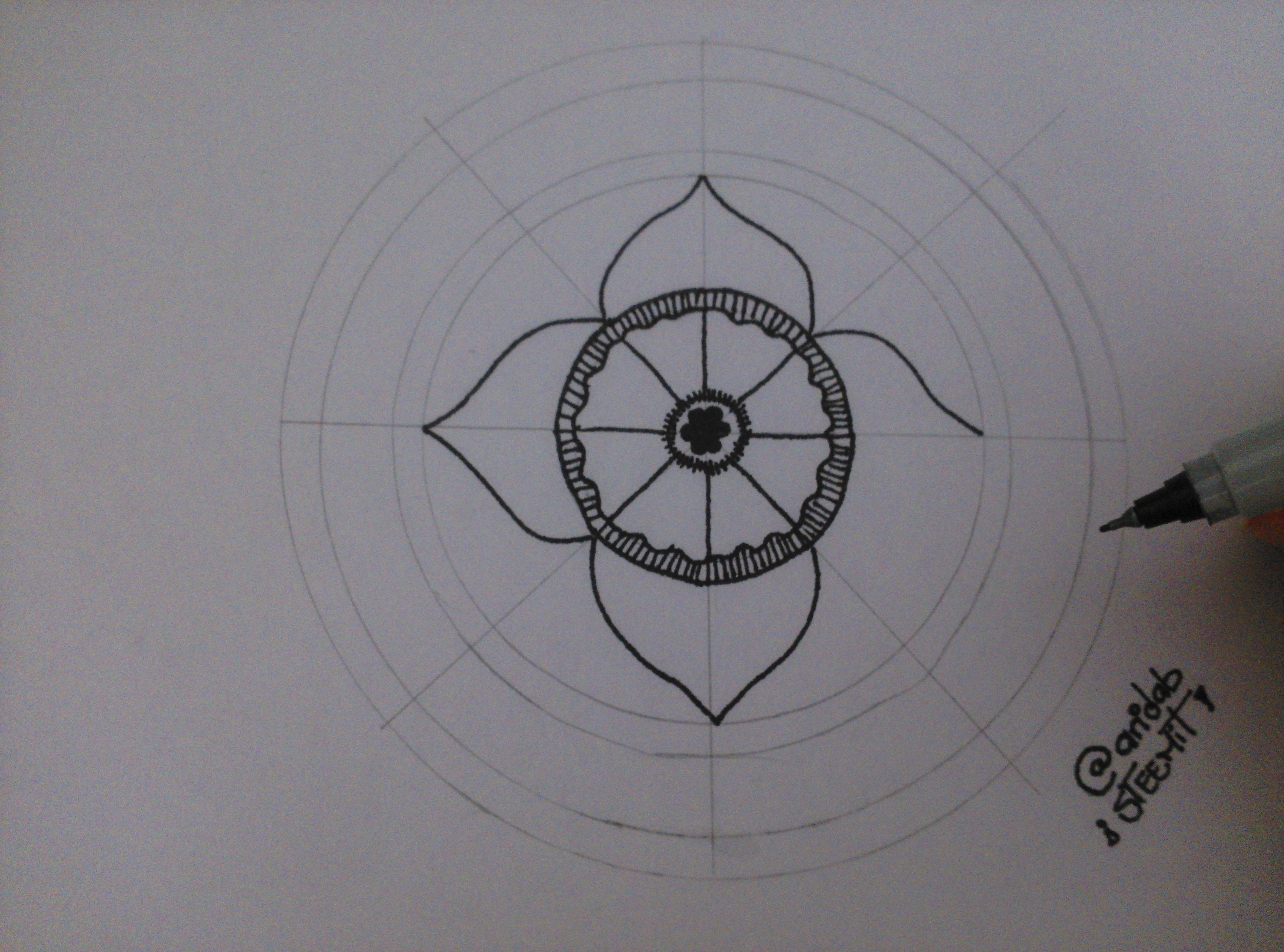 7.- Traza las líneas del círculo siguiente y agrega pétalos pequeños en su interior (puedes hacerlos anchos o alargados)