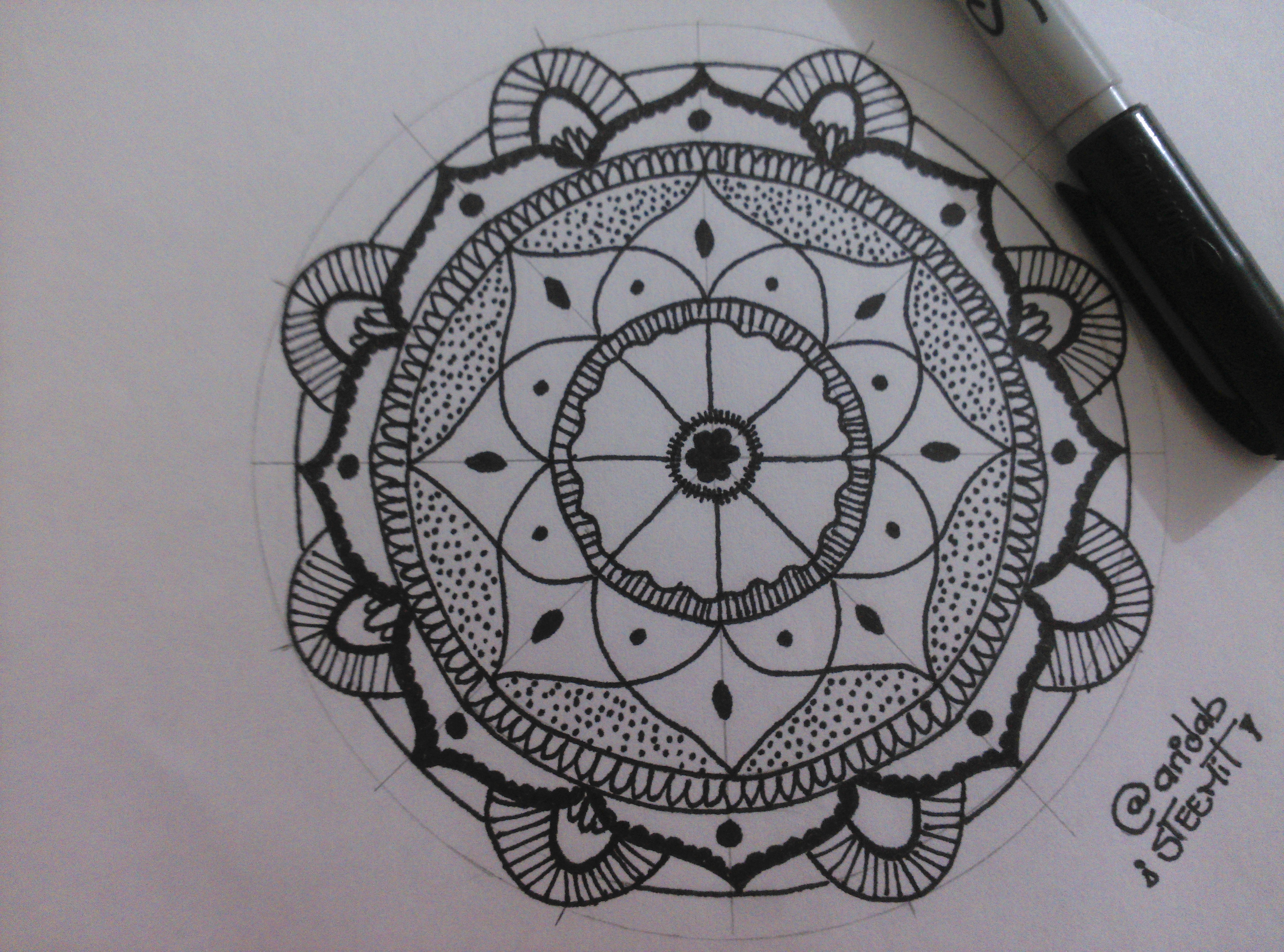 Yo nunca había hecho uno completo, normalmente llenaba con diseños un trozo de círculo y allí quedaba. Pero esta vez si quería terminarlo. Estuve buscando algo de inspiración por internet, y encontré diseños súper creativos pero que a simple vista parecían muy abrumadores.