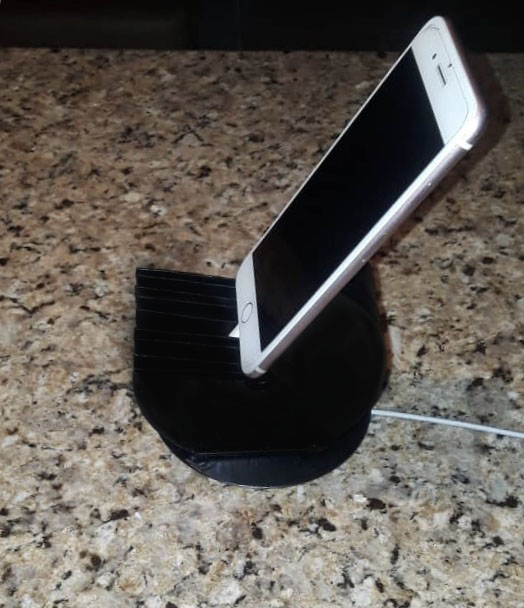 Ya está lista para usar nuestra base de carga con materiales reciclados, espero que les guste y que esta idea los inspire a realizar otros objetos utilitarios reciclando materiales.