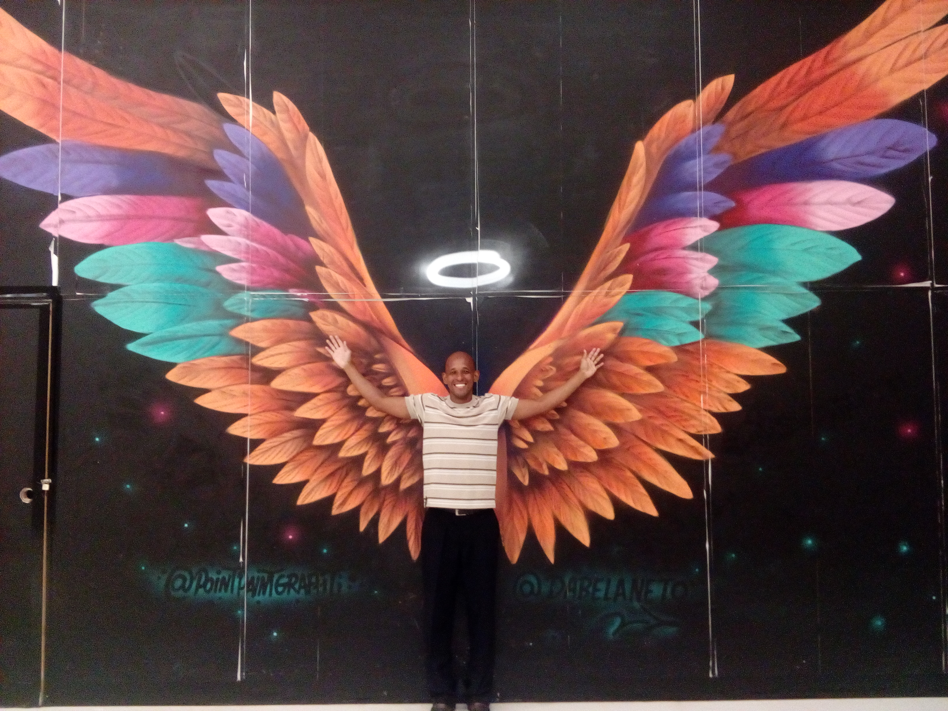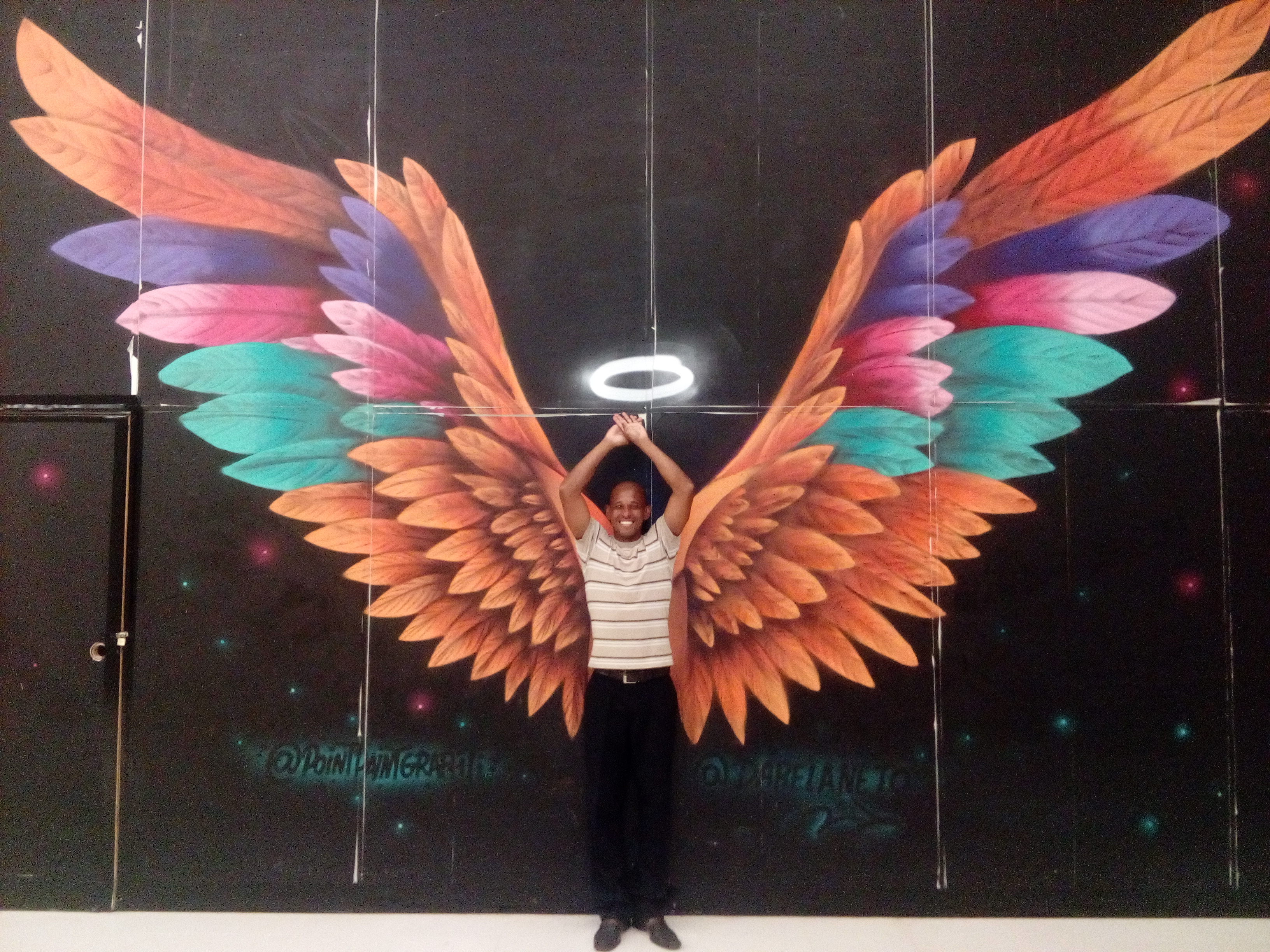 Hola amigos de steemit, soy de Venezuela pero por razones economica me vi obligado a emigrar a otro pais asi que me vine con mi familia a Brasil, resido en Manaus una ciudad en medio de Amazonas, es enorme, hace poco visite un centro comercial y quize ser creativo vi un dibujo en una de las paredes y me tome unas fotos con mi telefono celular bueno mi esposa me las tomo y quize compartirlas
