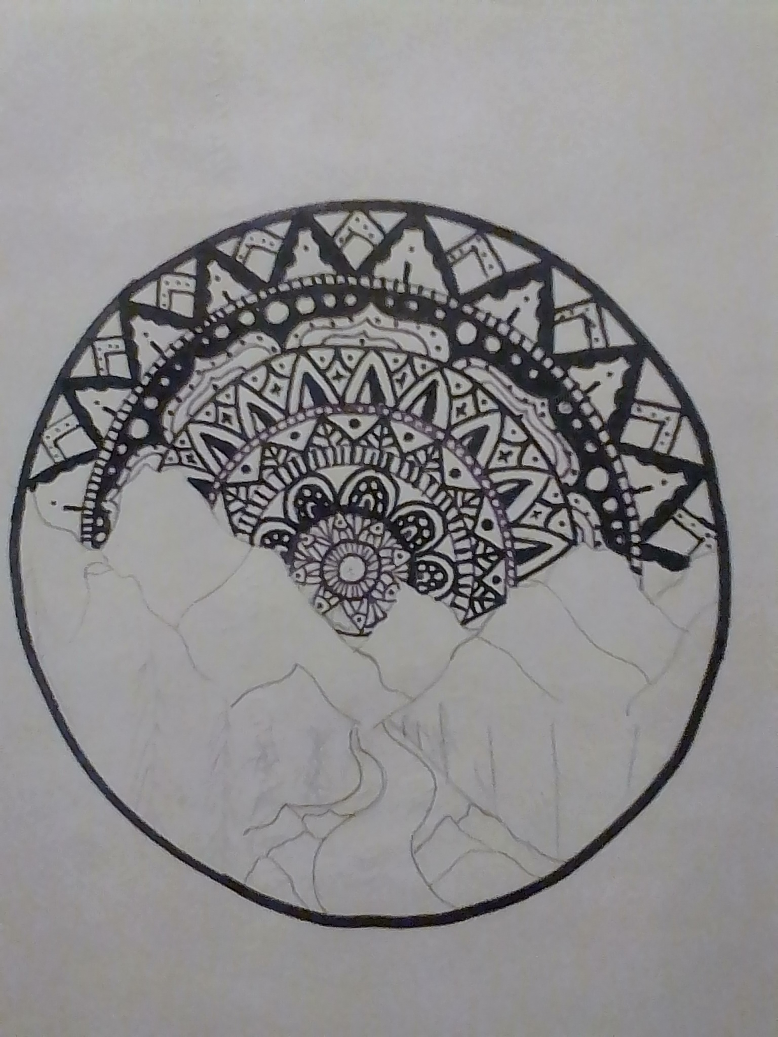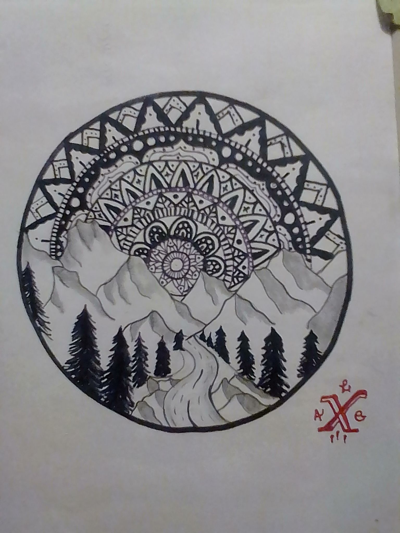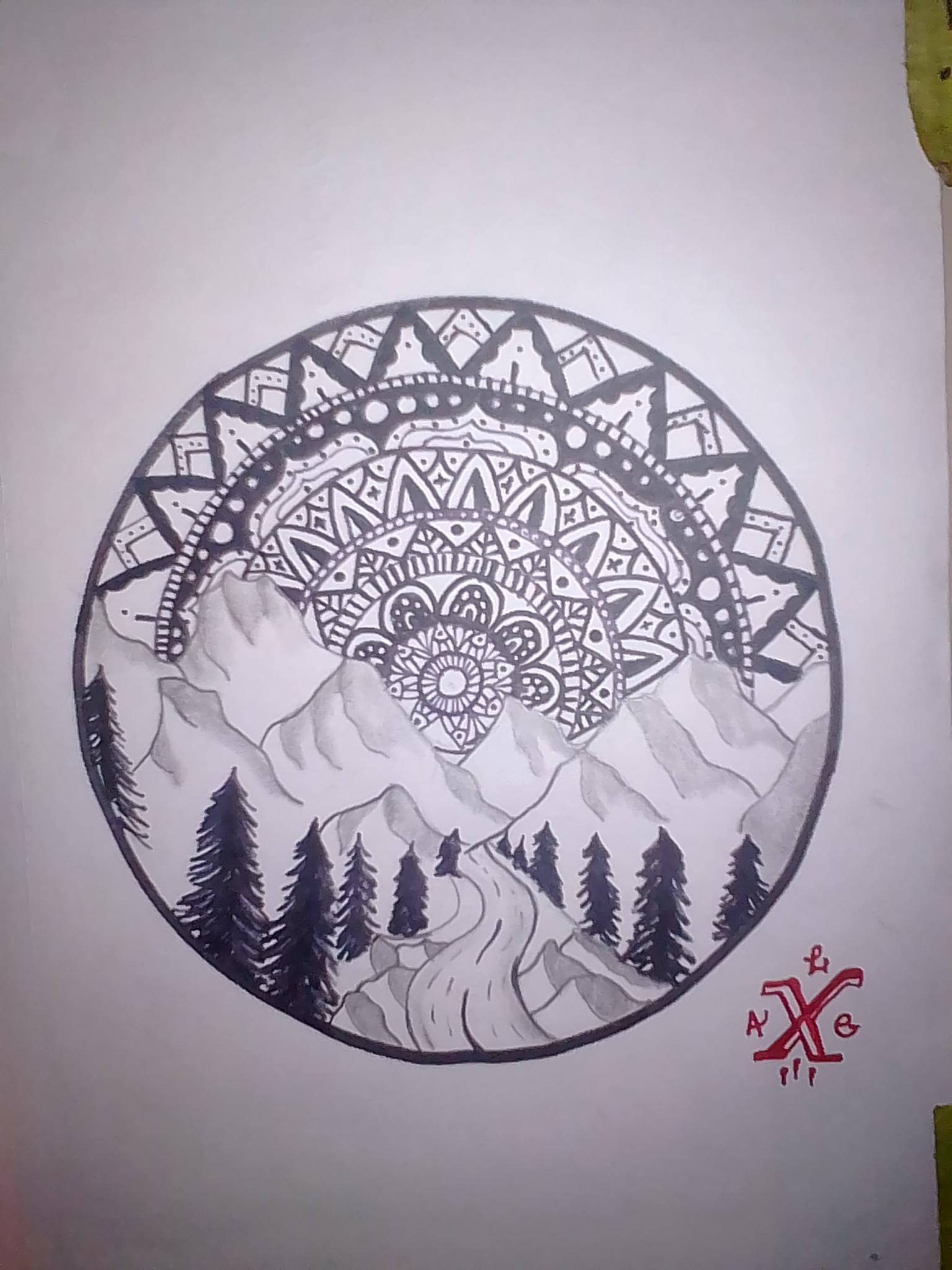 HOY LES PRESENTO ESTE ARTE VISUAL REALIZADO EN SUPERFICIE DE HOJAS BLANCA TIPO CARTA, REALIZADO CON MARCADORES NEGRO,PUNTA FINA Y GRUESAS QUE LLEVA DE TÍTULO:(“ PAISAJE EN MANDALAS”) ARTE VISUAL QUE MUESTRA UN PAISAJE DE CARRETERA Y ARBOLES QUE LLEVAN AL FINA DE UNA CARRETERA DONDE ESTA UN CIELO LLENO DE MANDALAS.