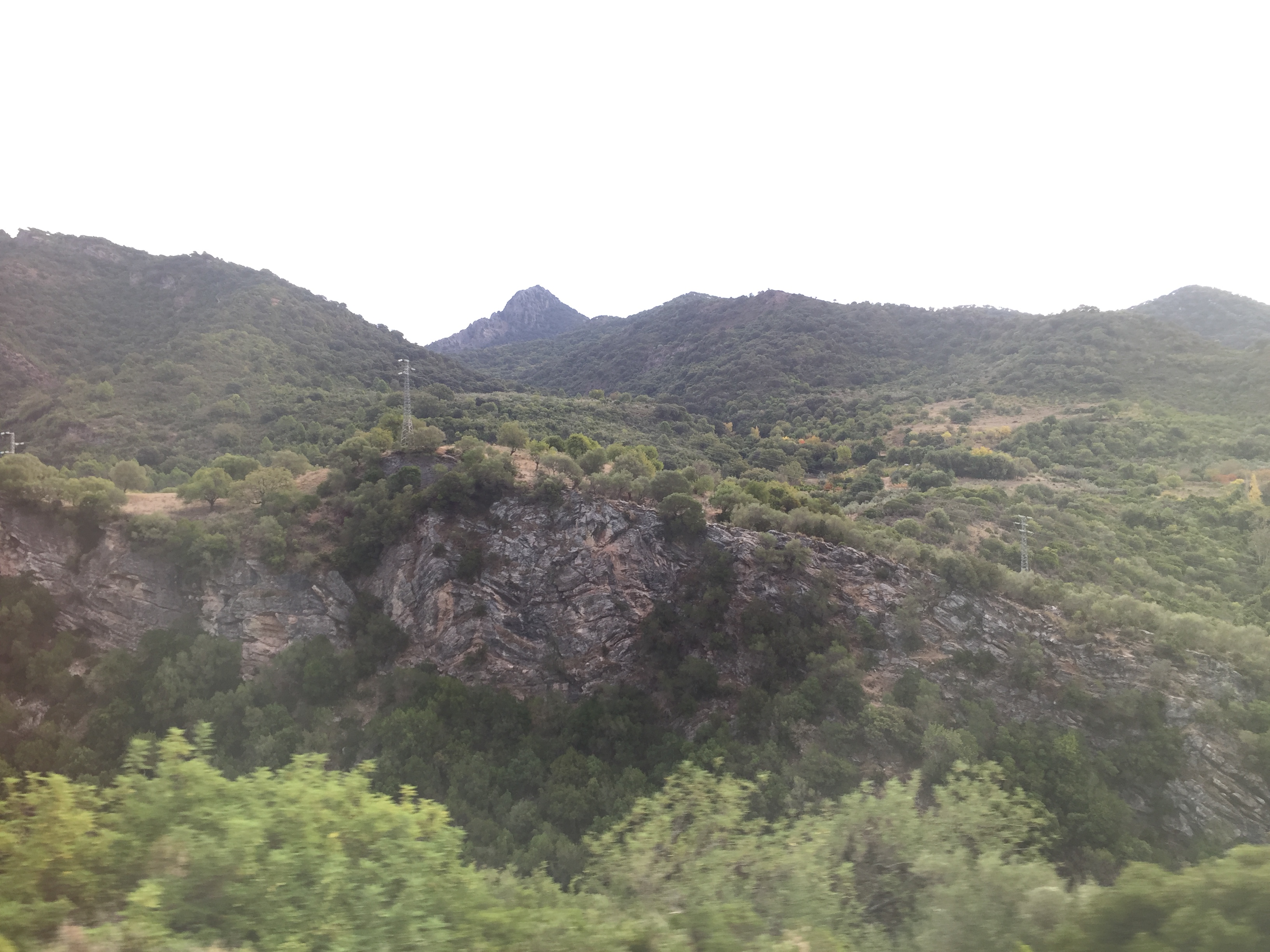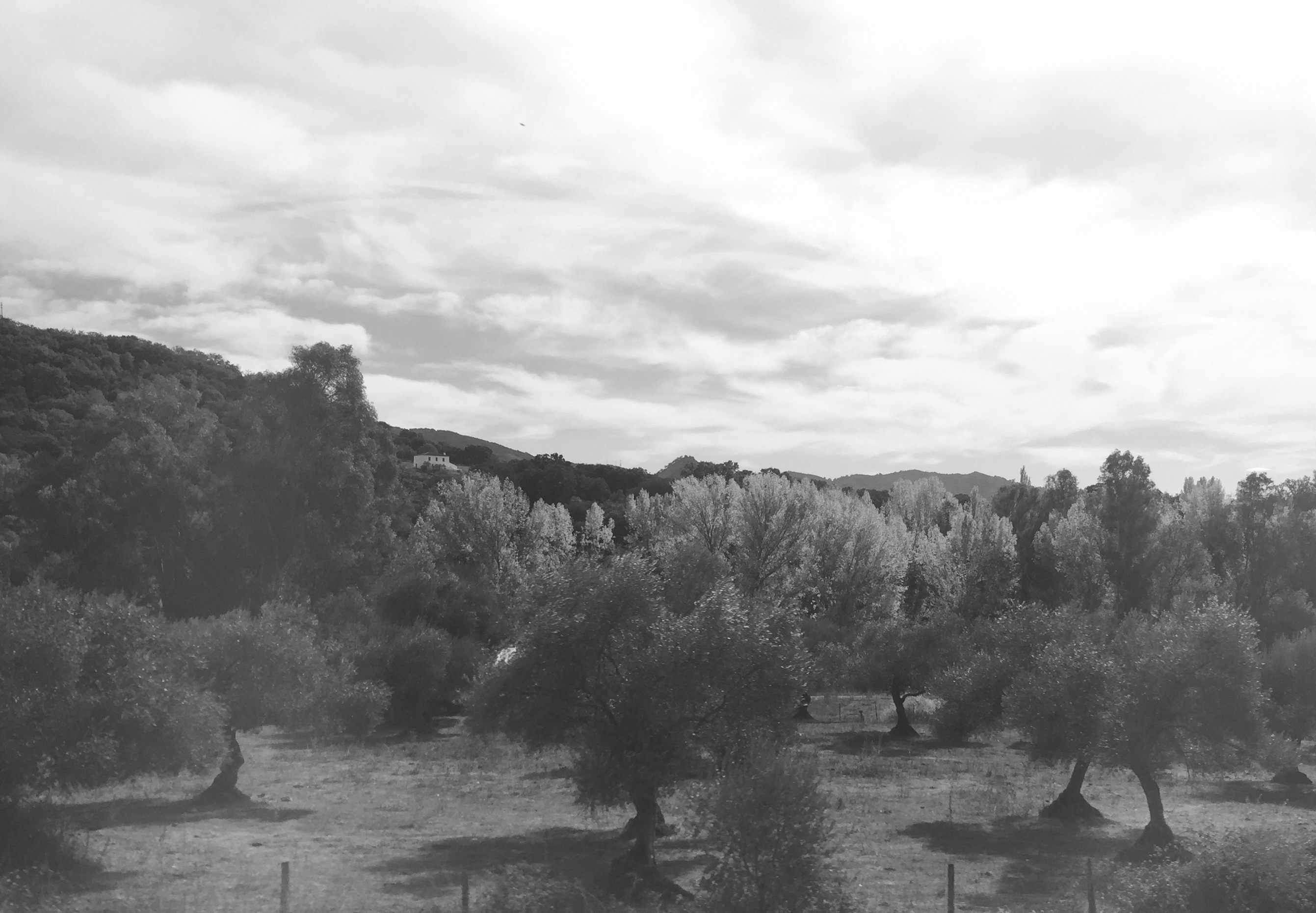Alcornoques, encinas, quejigos, olivos. El paisaje relaja y no importa que el tren viaje a muy poca velocidad.