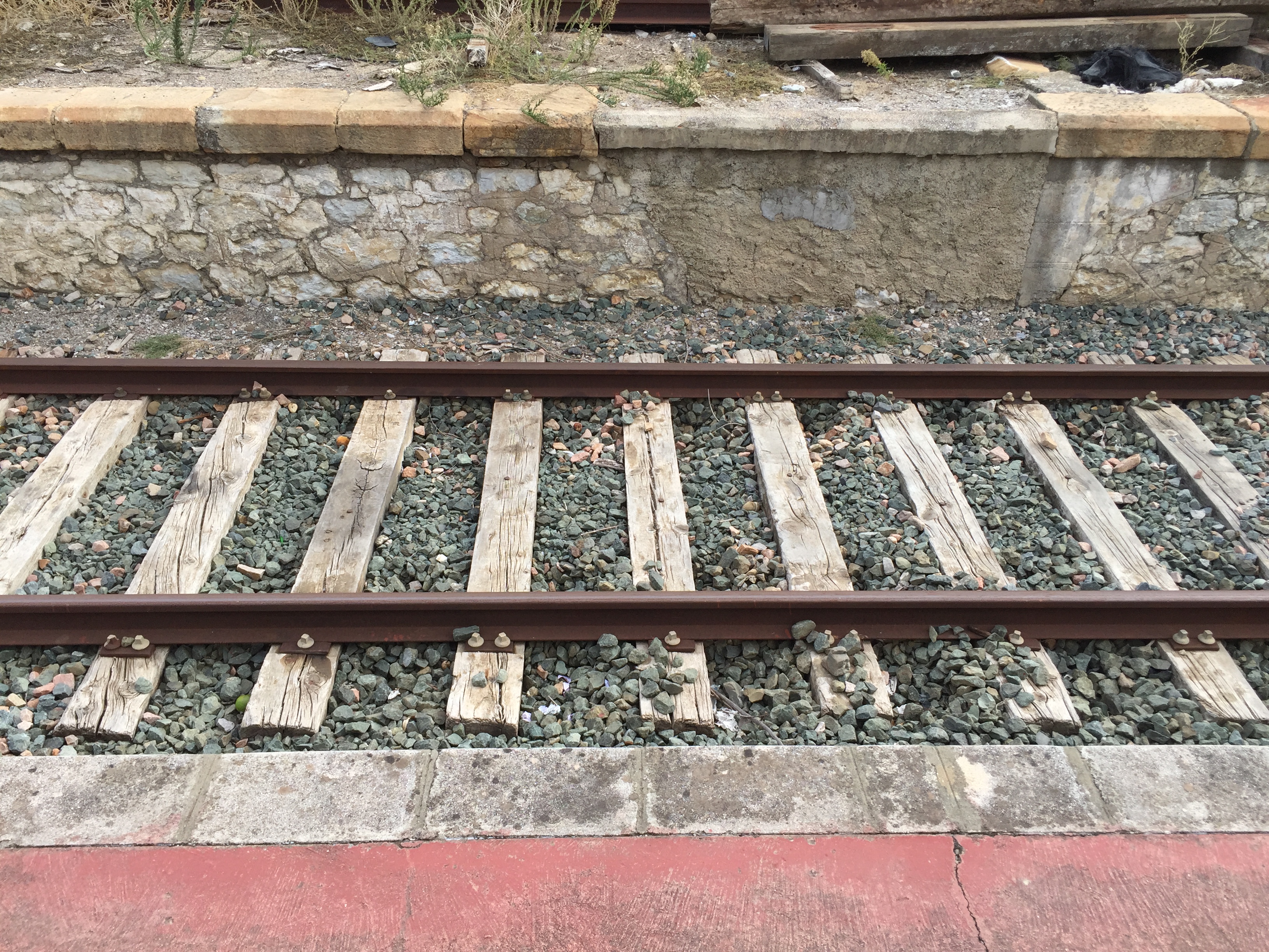La estación de Jimena con las traviesas de Roble centenarias.