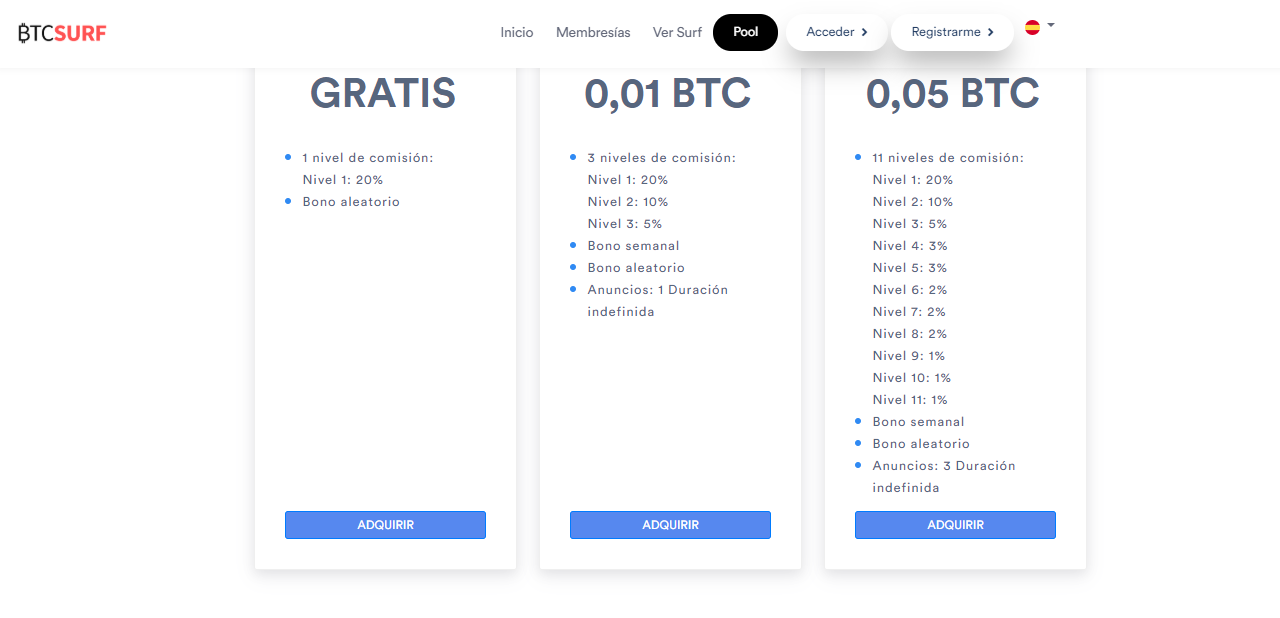 el segundo nivel es pago se adquiere pagando 0.01 BTC ademas de ganar BTC por tus referidos ganas btc por los referidos de tus referidos y bonos semanales y puedes hacerle publicidad a una web.