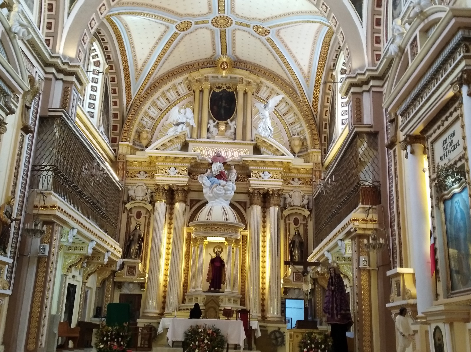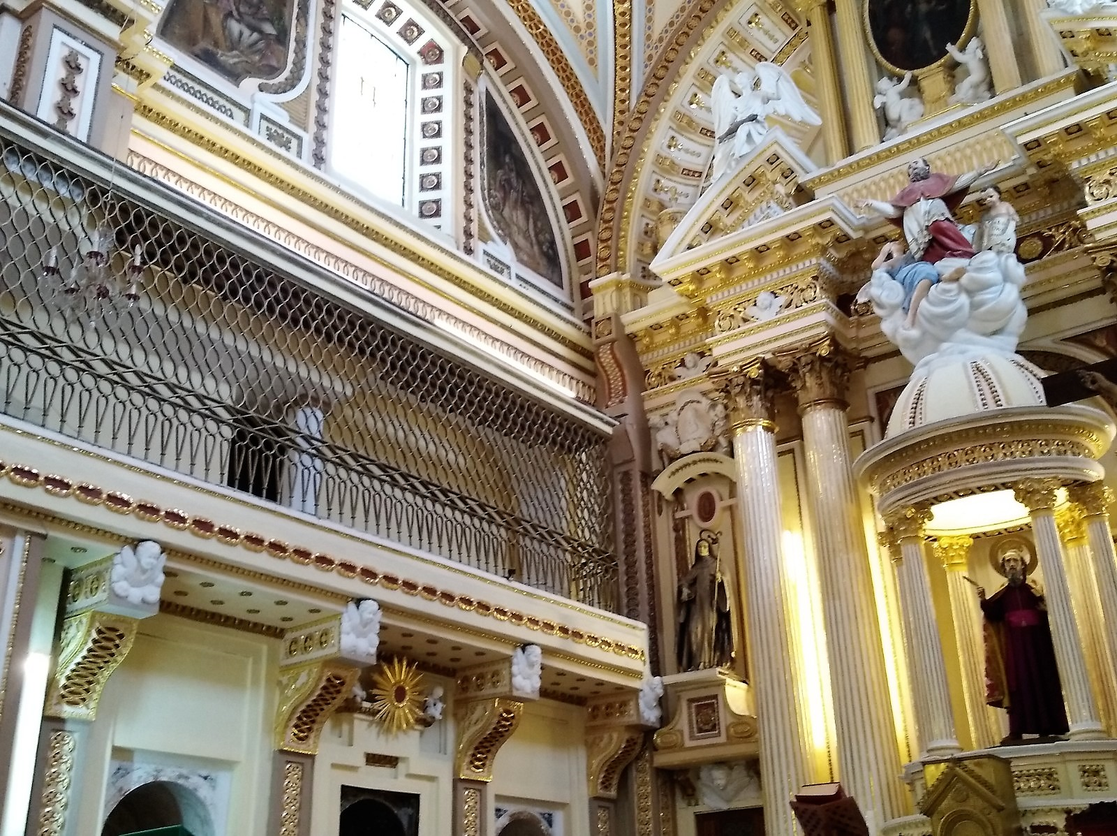 Por dentro es más bien de un estilo neoclásico con muchísima decoración, que yo en lo particular siento hasta recargada a comparación de la sencillez de su exterior.