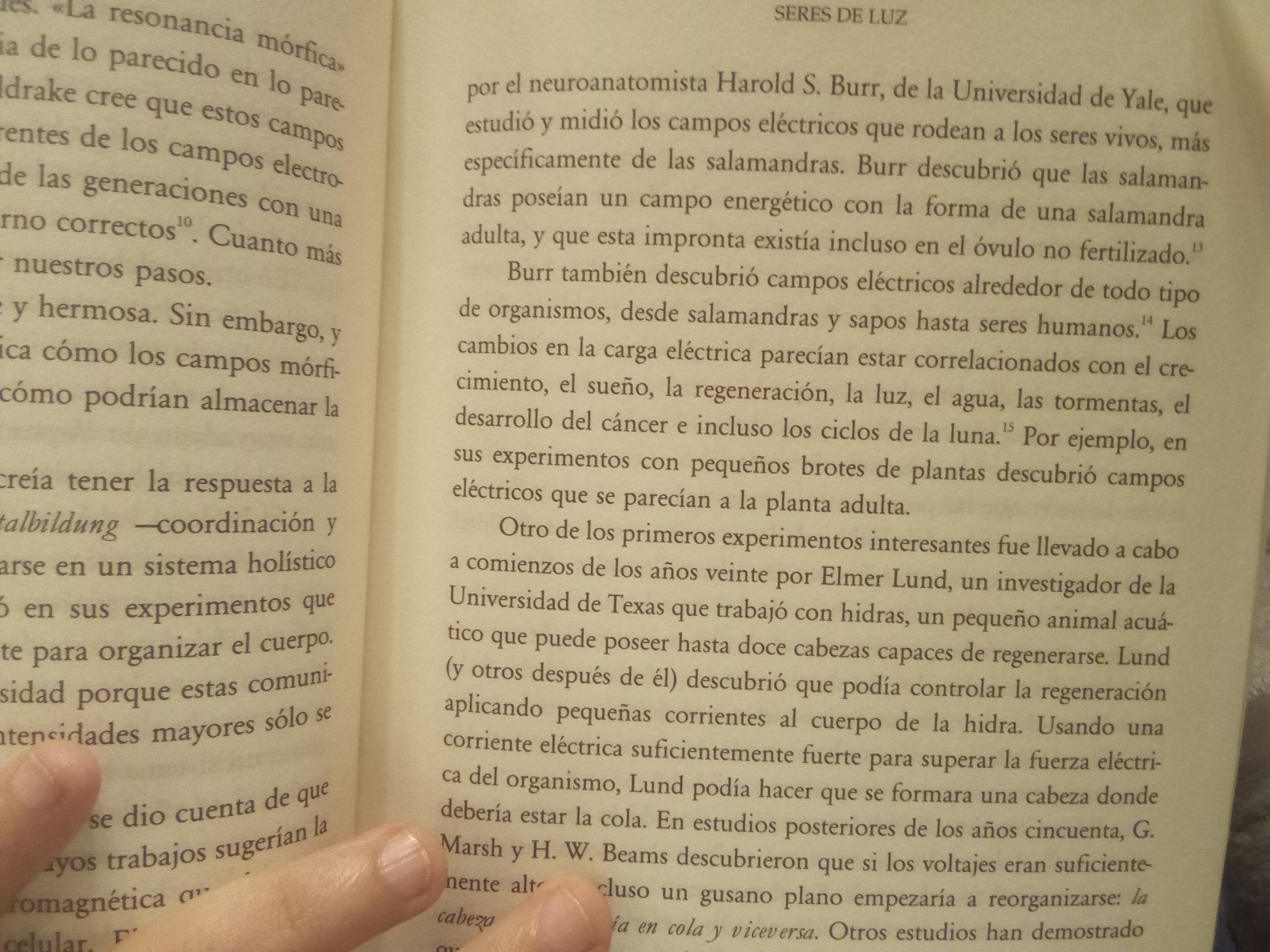 Las hidras son pequeños animales acuaticos que llegan a tener hasta 12 cabezas con capacidad de regeneración. Harold Burr, neuroanatomista, descubrió que si emitía frecuencias eléctricas mayores a las que la hidra emitia entonces podía redirigir la ubicacion de donde creciera la cabeza, podia crecer una cabeza donde debía ir la cola.