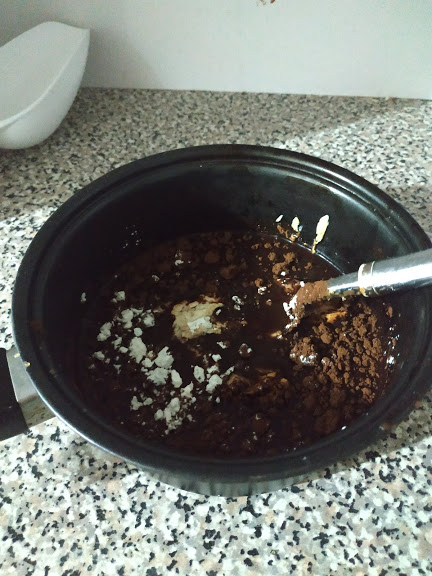 Rico bizcocho cubierto de chocolate, no contiene huevos, ni leche y se puede preparar perfectamente en la sartén.