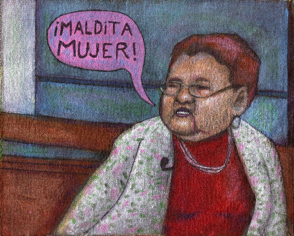 La caída de la señora Nancy en pleno show fue el hazmerreir de muchas personas a principios de la década del 2000. Se marcó en nuestra mente como un fierro ardiente en la piel de una vaca y ha llegado recientemente a muchos espectadores demasiado jóvenes para esa época gracias a la magia de internet, incluso en parodias. Por eso decidí dibujar a la protagonista de este evento con acuarela y bolígrafo sobre papel fabriano hace tres años.