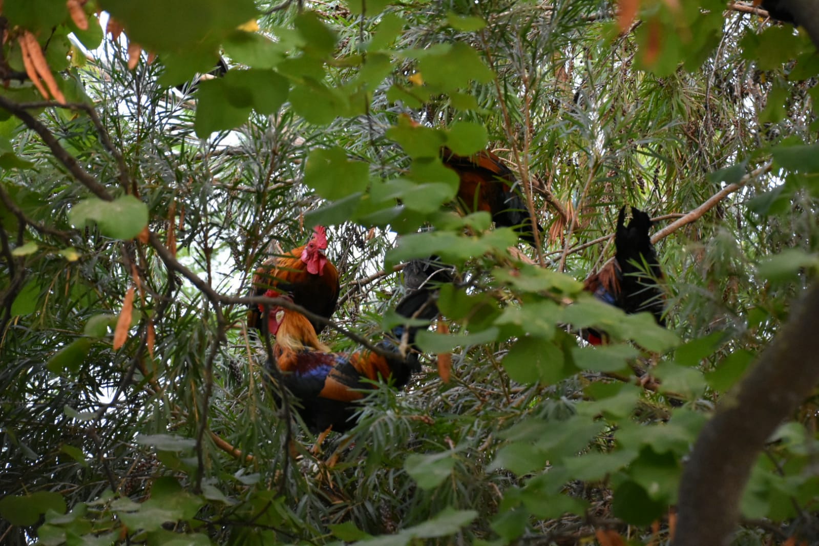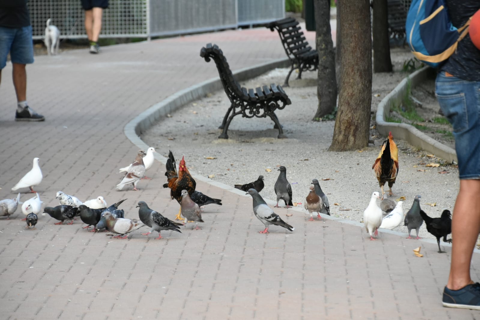 Nada más entrar, paseando por los senderos hay muchos animales moviéndose libremente por el parque, nos sentimos en un mundo mágico, los animales no se asustan, a pesar de que los niños corren tras ellos, intentando cogerlos, sobre todo son aves, gallinas de diferentes clases, patos, ocas. Procrean en el parque entre sus matorrales, más asustadizos son los conejos, pero también podemos observarlos.