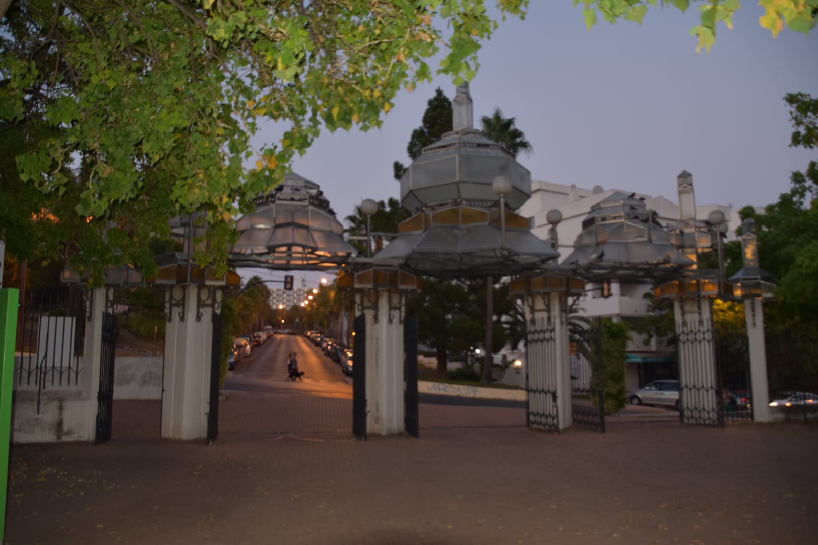 Lo primero que nos encontramos al llegar al parque, son sus puertas, tiene cinco entradas , destacan dos , una realizada con forma de faroles gigantes de cristal y otra de metal, simulando un tejado.