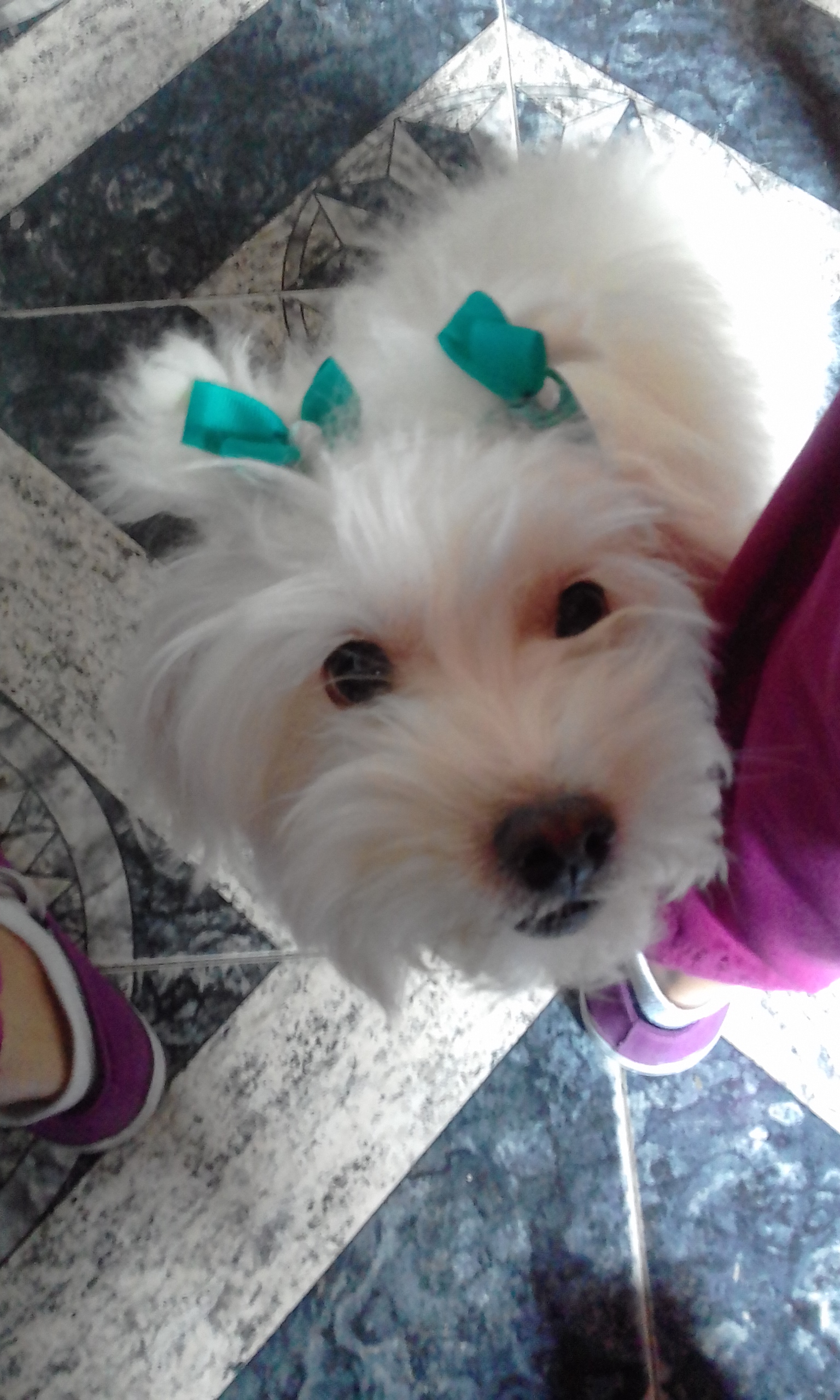 Tiene 8 años. Cumple 9 en agosto. Es muy juguetona y a veces muy celosa conmigo, ha sabido como cuidarme y consolarme todos estos años. Es parte de la familia, en casa, todos la amamos, como nuestro pequeño tesoro que es.