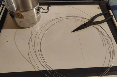 Finalmente hacemos una pequeña mesa en alambre, del tamaño interno de la olla para que nuestras plantas no toquen el agua.