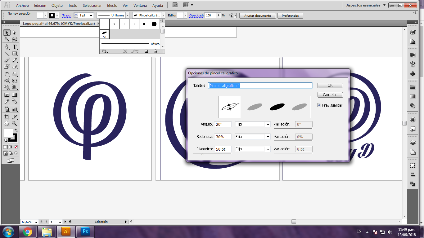 Luego hice algunos ajustes al estilo del pincel caligráfico que le agregué al trazo