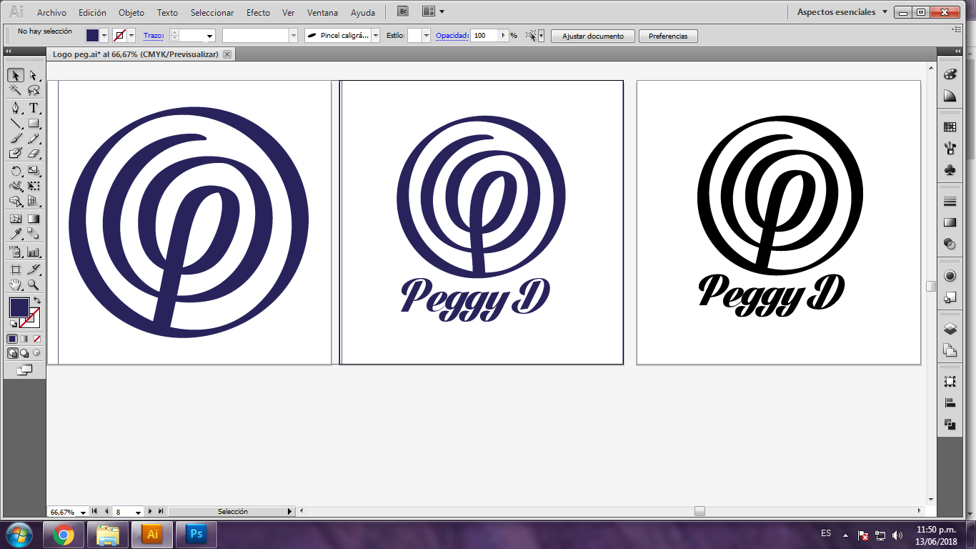Esta es mi versión original, el imagotipo está inspirado en una síntesis visual de las iniciales PCDR por Peggy Cristina Díaz Rincón que es mi nombre completo y en la figura de la clave de sol, que me recuerda a los años que le dedique en mi infancia al estudio musical.