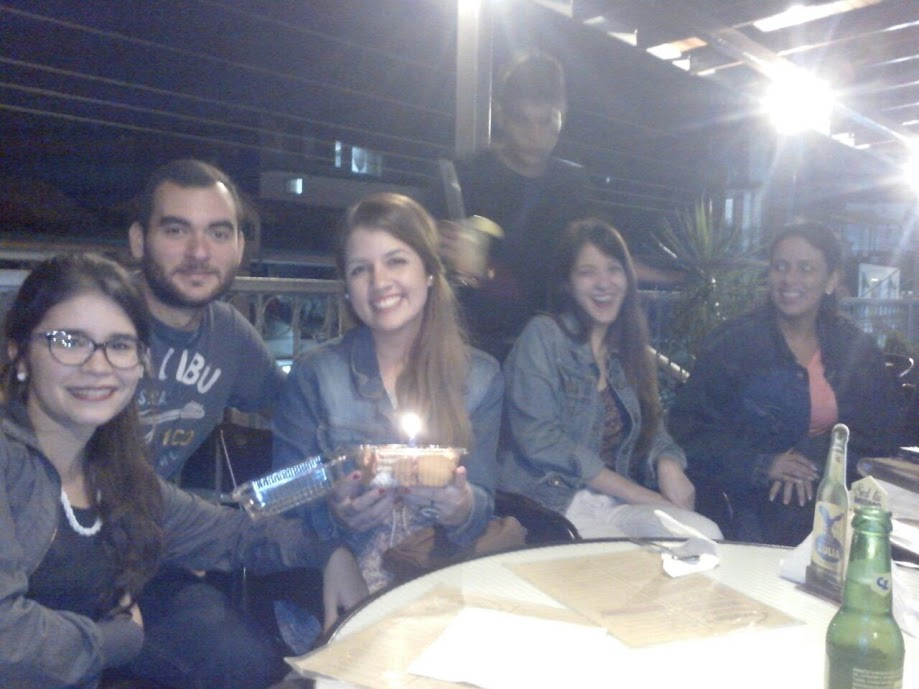 Esta foto me da mucha nostalgia, pues en ella la mayoría de las personas no están en Venezuela, fue una noche muy bonita, comimos mucha pizza, fue en mi casa, y también muy extrañamente ese cumpleaños me dieron regalos, varias personas; eso fue extraño pues ya a cierta edad uno como que deja de recibir regalos con frecuencia en su cumpleaños, pero bueno este también ha sido uno de mis mejores cumple años.