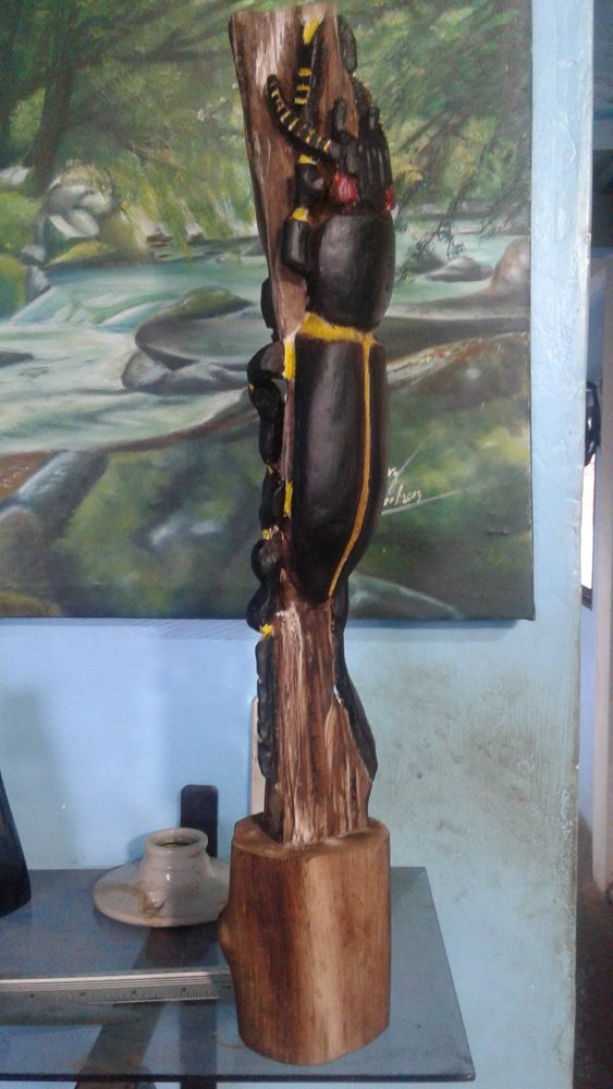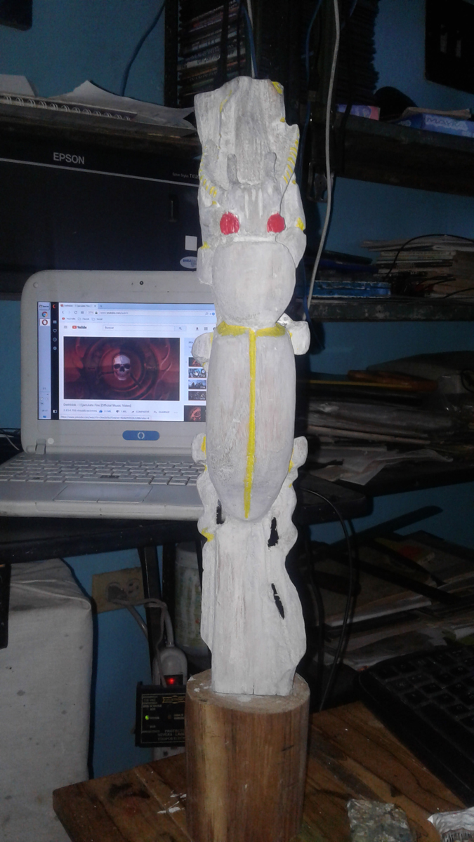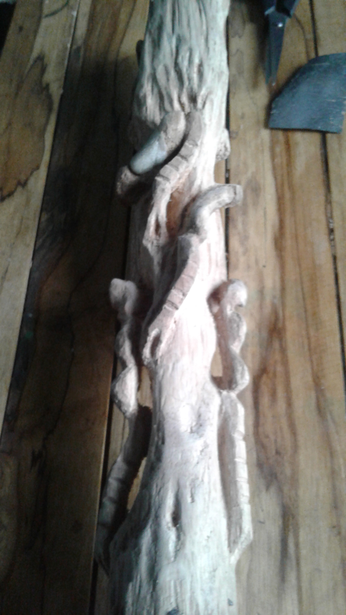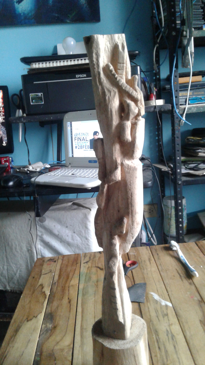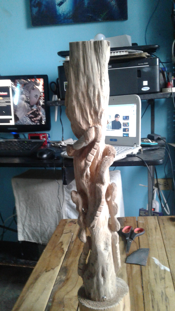 Este trabajo es mi primera talla en madera, la técnica la aprendí mirando tutoriales por @Youtube los materiales son un trozo de un árbol que me encontré por ahí tirado lo cogí y lo arregle a mi gusto, por lo general para la técnica de la talla requiere de una madera muy blanda y fácil de tallar, unas cuchillas con gran filo y gubias.