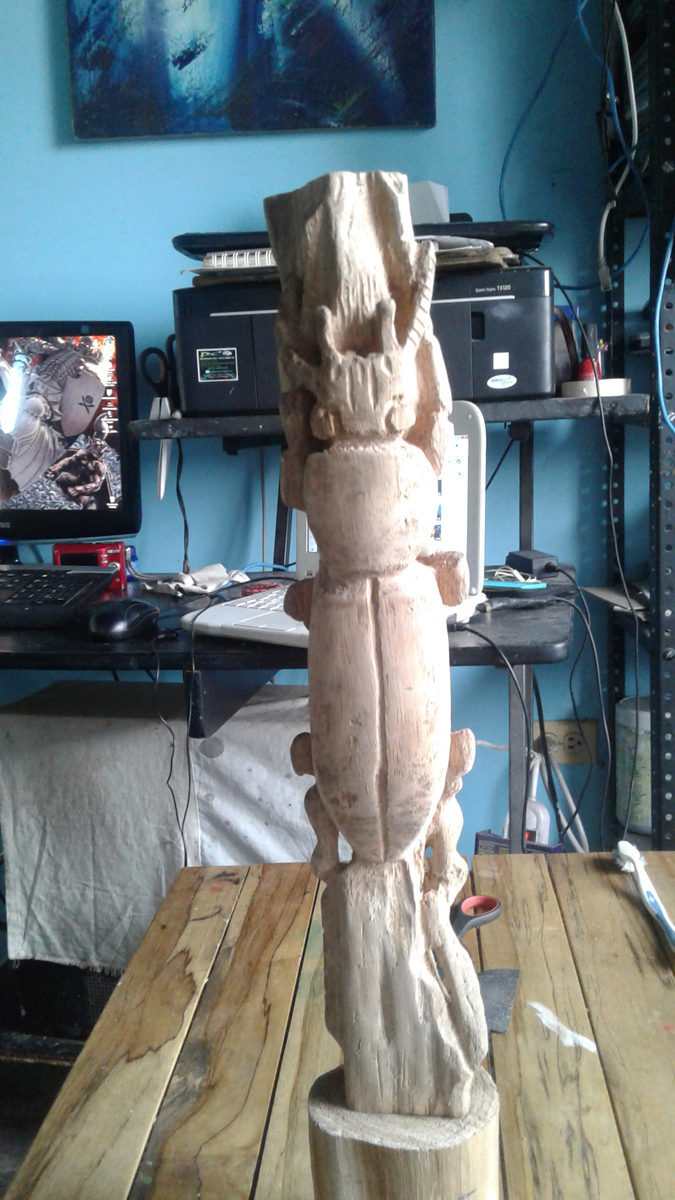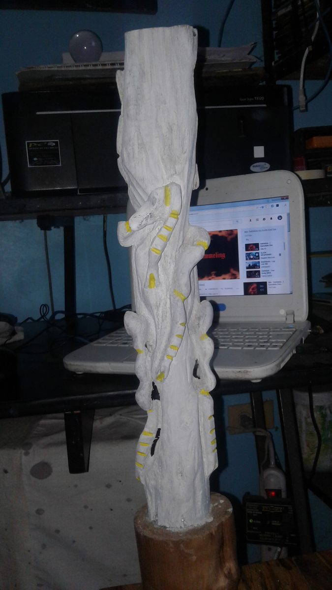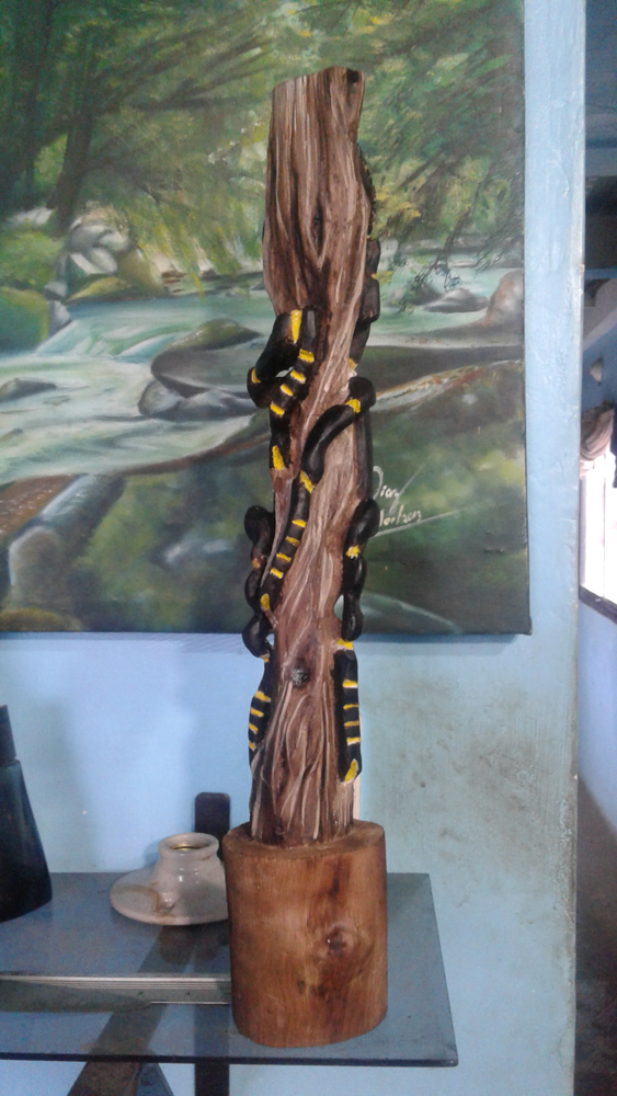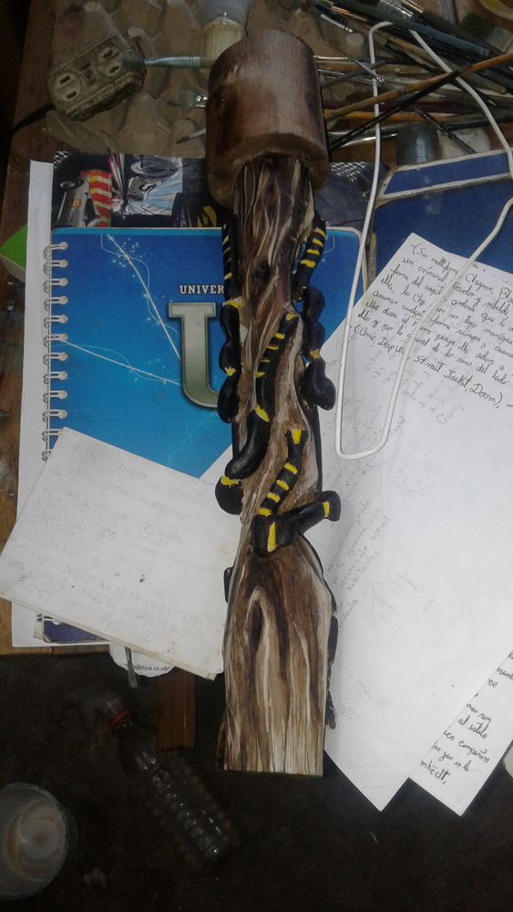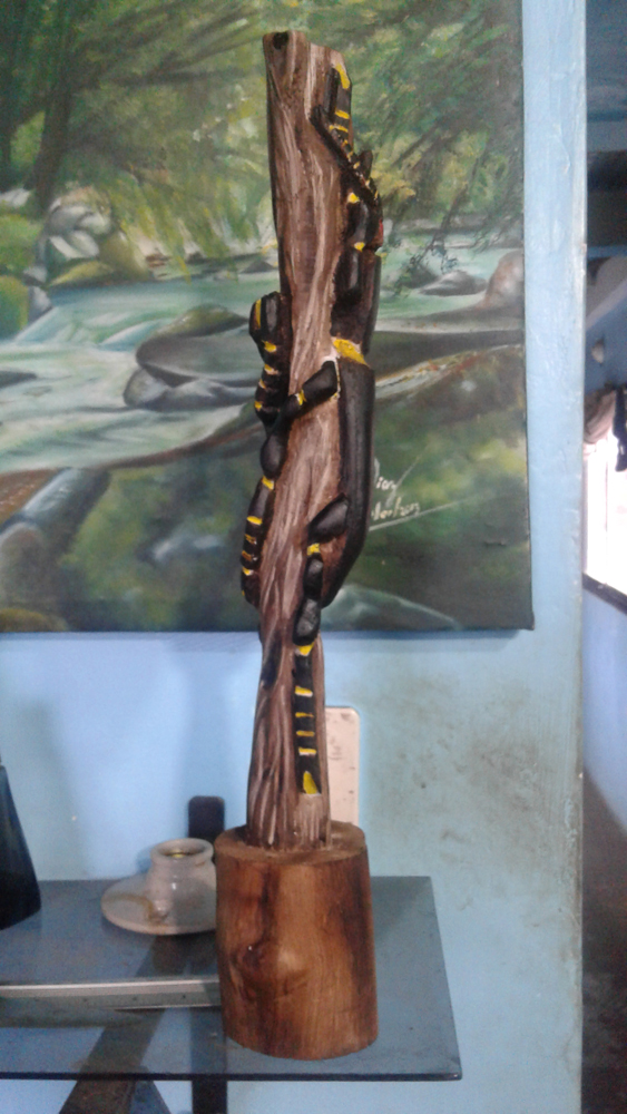 Este trabajo es mi primera talla en madera, la técnica la aprendí mirando tutoriales por @Youtube los materiales son un trozo de un árbol que me encontré por ahí tirado lo cogí y lo arregle a mi gusto, por lo general para la técnica de la talla requiere de una madera muy blanda y fácil de tallar, unas cuchillas con gran filo y gubias.