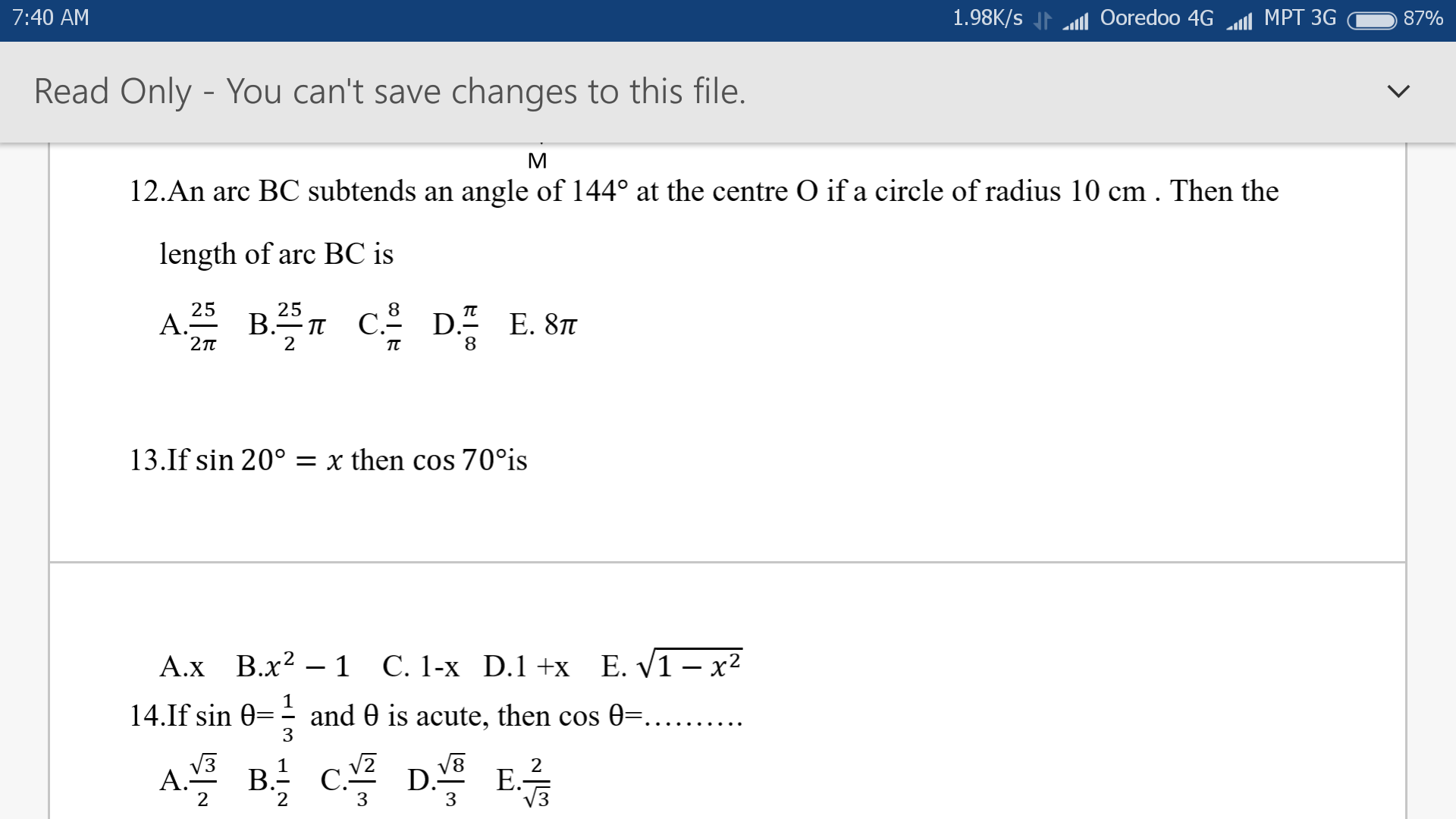 18.If cos x = 2425, and x is acute, then the value of tan x=……….